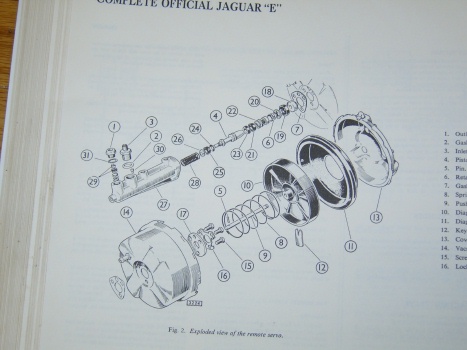 The master and slave cylinders should be “bench bled” before installing them. Directions for this process are available in the shop manuals but the general idea is to fill them with fluid and expel all the air. I then installed the master cylinder, slave cylinder, and the vacuum booster with its various rubber vacuum lines. There is a good diagram in the Bentley manual to show how everything should be plumbed. By the way, at this point I had not tackled the wheel cylinders and disks at the rear suspension unit. On the E-Type, the rear brakes are mounted “inboard”, near the differential. This design reduces the “unsprung mass” out at the wheels. It is one of the many small things that racecar designers do to improve cornering and handling. On the E-Type, it also makes it almost impossible to reach the brake parts for maintenance without dropping the entire rear suspension assembly. I decided to put this off for the time being, fearing what I would run into when I tried to remove the rear suspension. So I installed all the pieces at the firewall and reattached the brake lines leading to the front and the rear wheels. I bled fluid through the lines to my Volvo calipers and was able to get a solid pedal, albeit with no power assist as the engine was not running and there was no vacuum available. Next I decided to fire up the engine, in order to establish a vacuum source and see how the power assist worked. There was a definite difference to the pedal feel when I applied the brakes. But at some point I realized that the brakes were not releasing after I removed pressure from the brake pedal. This was not good!