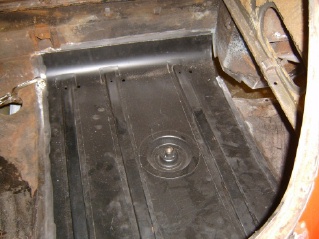 Next I turned my attention to the passenger side floorboard. The floorboard was not totally rusted but it was too far gone to attempt to salvage with patch panels. Plus the floorboard is one those replacement panels that can be purchased from Martin Robey. I bought a full set of floorboards from Terrys, one for the left side and one for the right side.