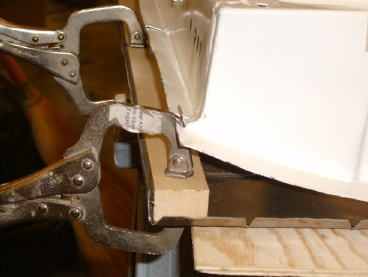 A side issue is that the cut line across the existing door skin will most likely be wavy once freed from its previous bonds. You will need a straight edge to work against. I bought a piece of 1″x1″x 3′ long steel tube from Home Depot. After grinding/blasting/sanding the inner door skin down to bare metal, I used structural 2 part epoxy to bond the tube to the back side of the door skin. Use the kind that sets up in an hour, not the 5 minute kind. And bring plenty of C-clamps into use to help the skin lay flat on the tube. By the way, it may set in an hour but it takes 1 or 2 days to really form a good bond so leave those clamps in place as long as possible.