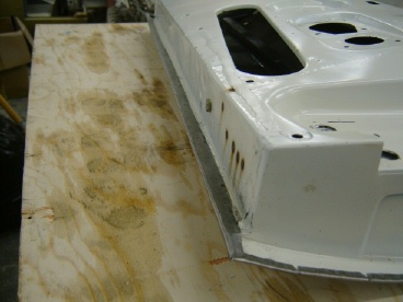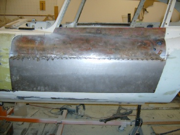 metal fabrication myself. There was rust at the very bottom and evidence of previous collision damage repair further up but about half way up the door panel things looked pretty good. So I scribed a horizontal line across the door and proceeded to cut with my cut-off grinding wheel. The outer door skin is folded 180 degrees around a flat edge presented by the inner door panel. For the scrap piece, one just needs to grind through the outer edge of the lip until things begin to separate. At the bottom of door, additional metal was removed where the rust resided. When done, I had a door that was a mere shadow of its former self.
