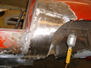 I know that a few artisans out there are capable of welding in a perfect patch that leaves a smooth surface ready for paint. I am not one of those artisans. My skill level will get the surface of the patch close. I strive to leave it at or a little below the finish surface so that I can build up the final surface with body filler. Modern body fillers have come a long way in quality and one shouldn’t be scared of using them. Try and keep them thin (<1/8″) and there shouldn’t be any long term issues.