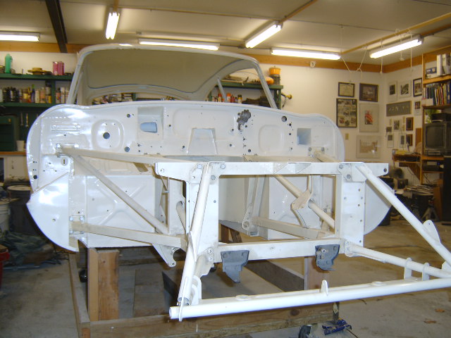 Fitting the engine frame to the rest of the car is a major event visually, as the car suddenly starts to look complete. I only wish! There are many parts big and small that still need to be added. But for now I’m happy to see the project shaping up into something that at least looks like it will be motoring in the near future, even though experience tells me I have a long way to go!