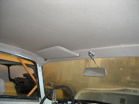Across the front of the car, where the sun visors and the rear view mirror reside, there is a removable metal strip that can be trimmed on the workbench, installed, and held in place with screws.