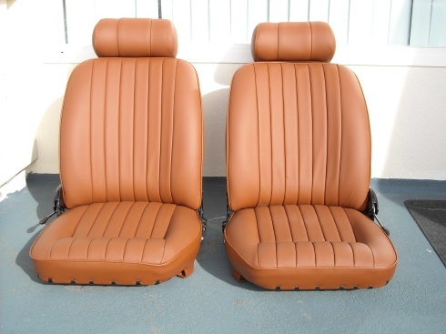 So it is time to work on the upholstery. I had ordered a full upholstery kit from BAS last year. The only part of the kit that I have used so far was the front seat items. In that regard, I became frustrated last year with a stillborn attempt to fit the seat covers after a flurry of activity involving blasting and painting of the seat frames. Events overcame me and it turned out that a new job assignment had me flying out to work near San Luis Obispo CA, the home of XKs Unlimited, for a few months. I broke down the seat parts and shipped them to myself in CA. I took the components over to XKs and had their upholstery specialist, Carl, install the seat covers. He of course did a very nice job. This worked out well for me, as while I was in CA I was unable to accomplish any work on my restoration project. I had the seats shipped back to me along with my other possessions when I came back to North Carolina. They are still in storage, waiting for the time to install them.