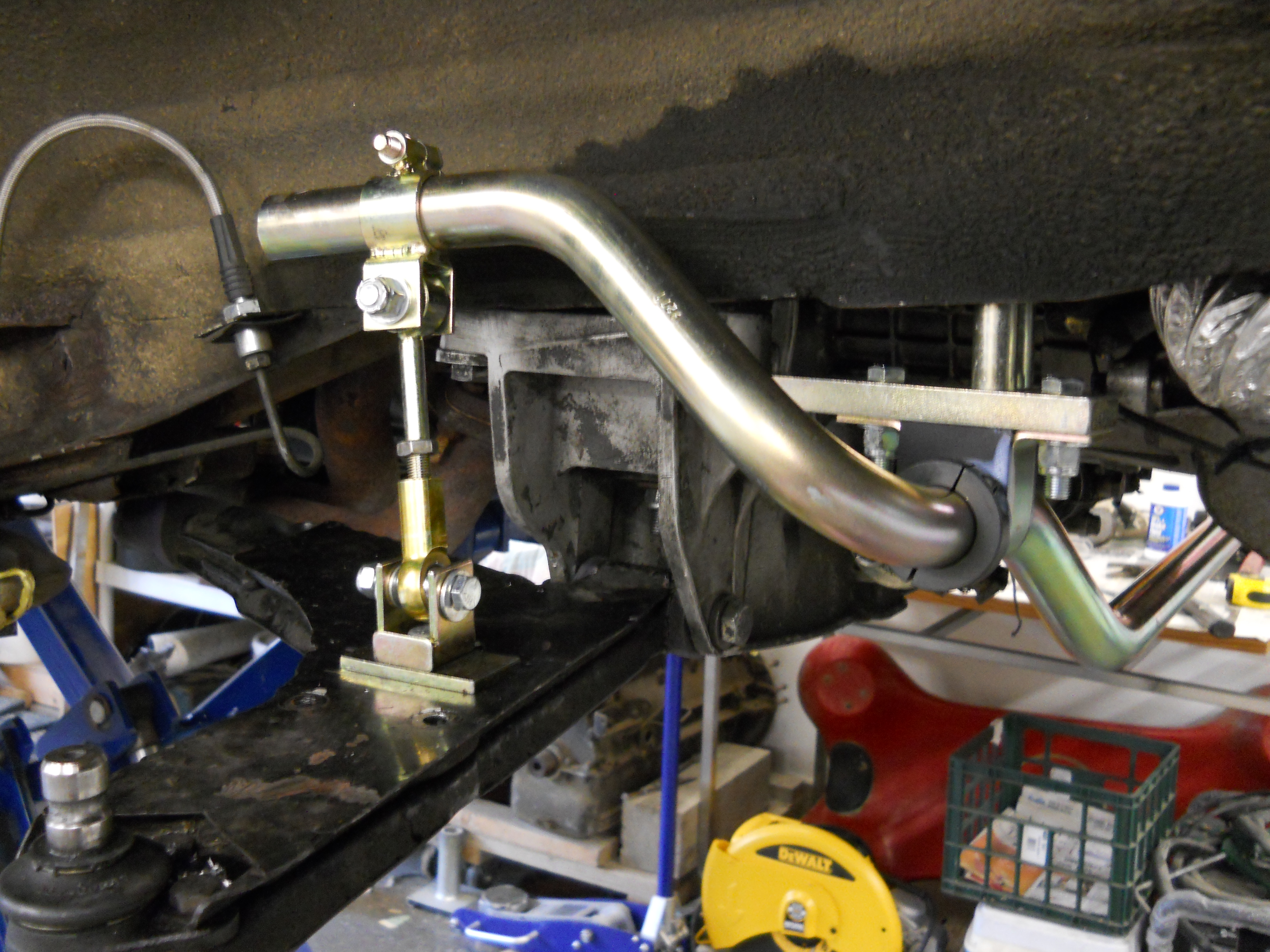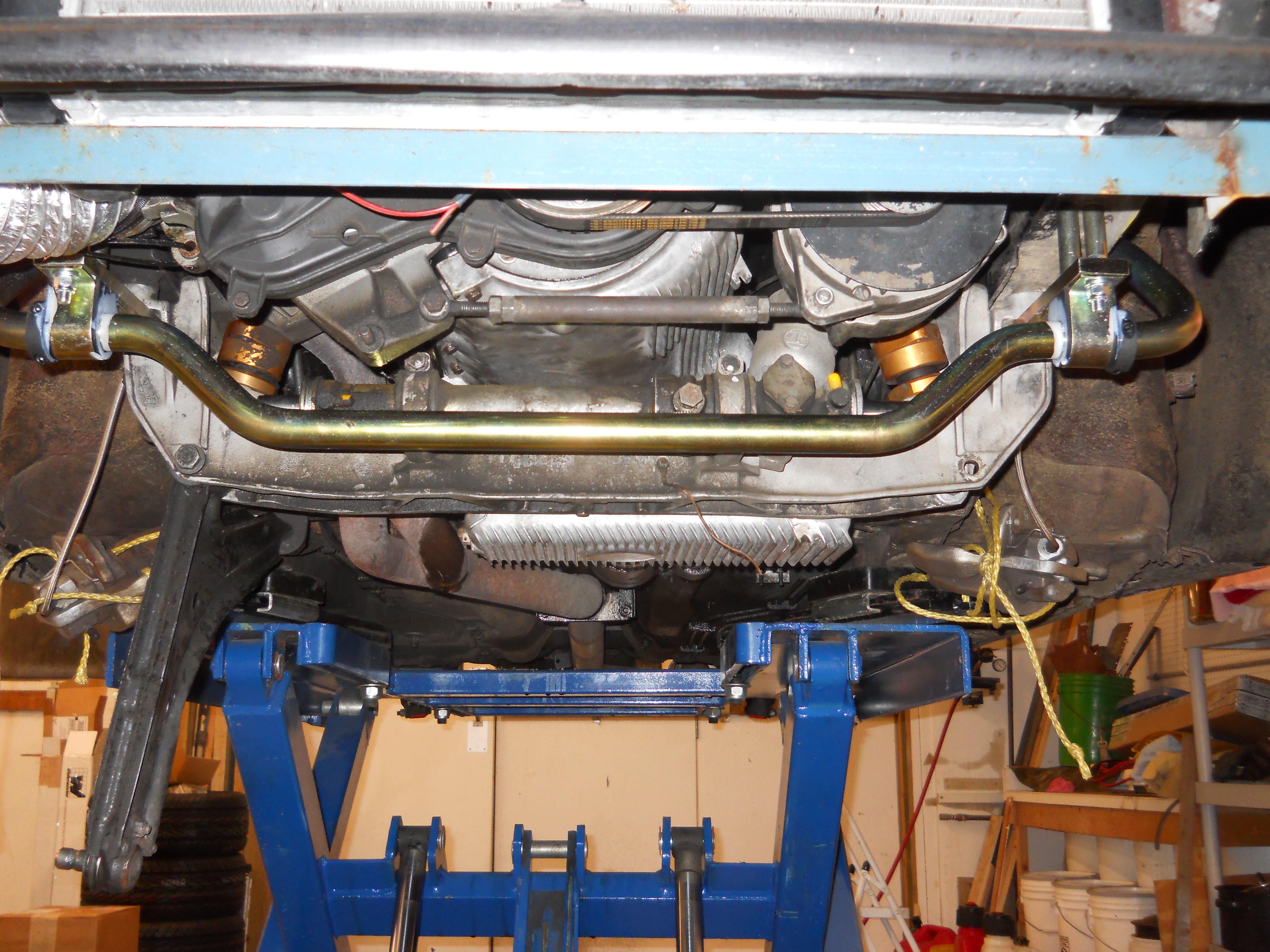 At the rear, I installed 30 mm torsion bars and 22 mm Weltmeister sway bars. And Koni shocks. The torsion bars are not very photogenic. Actually neither is the sway bar but here is a photo.