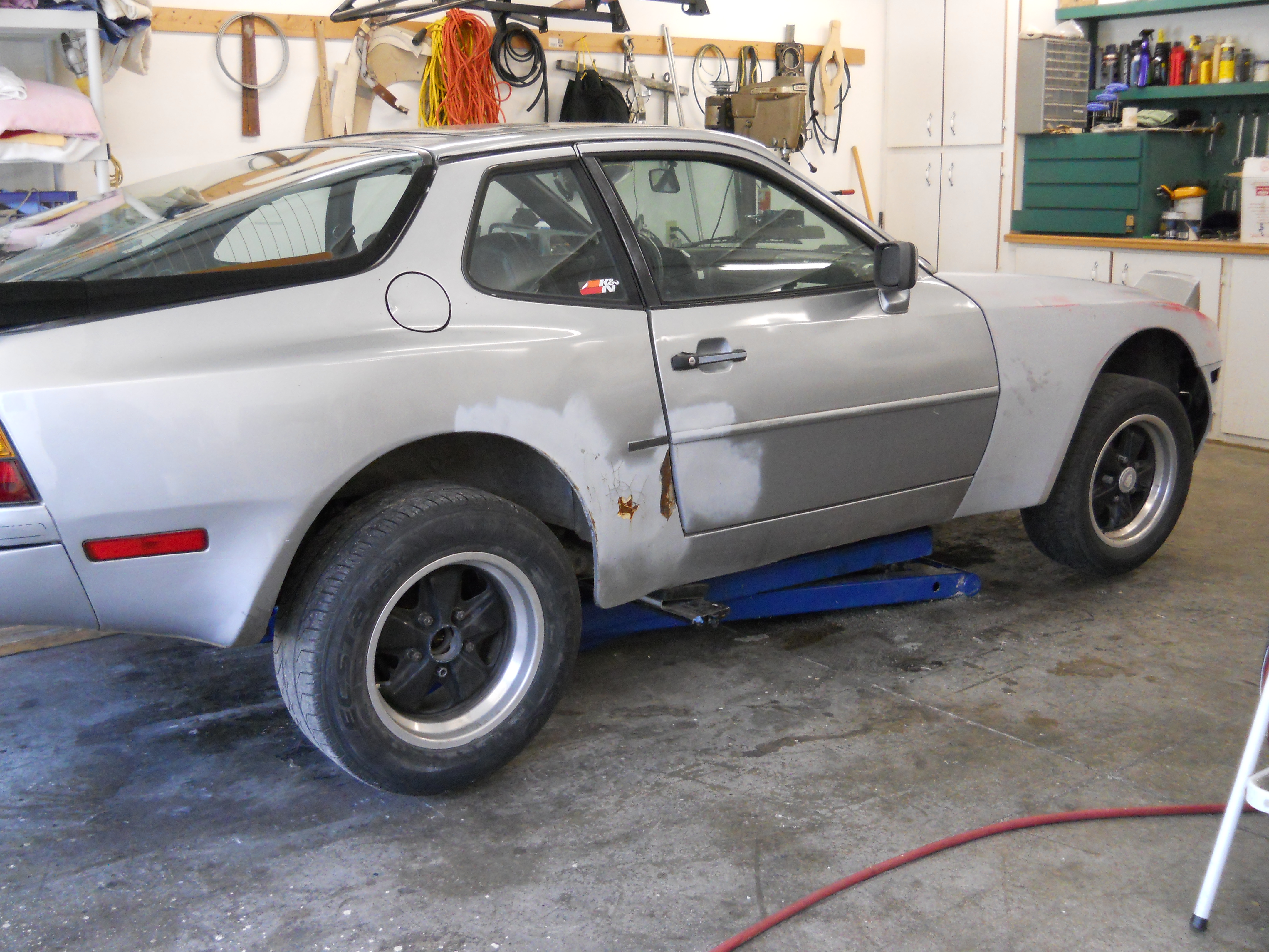 So it’s happened. I’ve slid down the slippery slope of multiple track car ownership. It started out innocently enough. I scan the Craigslist ads every week for Jaguar, Lotus, Ferrari, and Porsche. I’m not sure why but you just never know what might turn up. Well, as far as Ferrari’s and Lotus, next to nothing ever turns up. And I only look at the By Owner ads, as the dealer ads make me crazy with all the hype. There are usually 2 or 3 944’s listed for sale every week. I had decided that I wanted to get a spare engine for the orange track car. My most recent approach of buying a used engine from DC Auto resulted in me paying $1500 for something that needed to be completely rebuilt to ensure reliability. So I thought I would just buy a complete car this time. One Wednesday night while out of town on business I saw an ad for a 1984 944 that looked promising. I.e. cheap but running. I dashed down to Rock Hill from the Charlotte airport on my way home. The car had needs but the engine fired up and sounded good enough. Plus it sported a set of Fuchs and sport seats. When offered $1000 the owner said “Deal”. I returned the following week with my truck and trailer and hauled it home to the NewHillGarage.