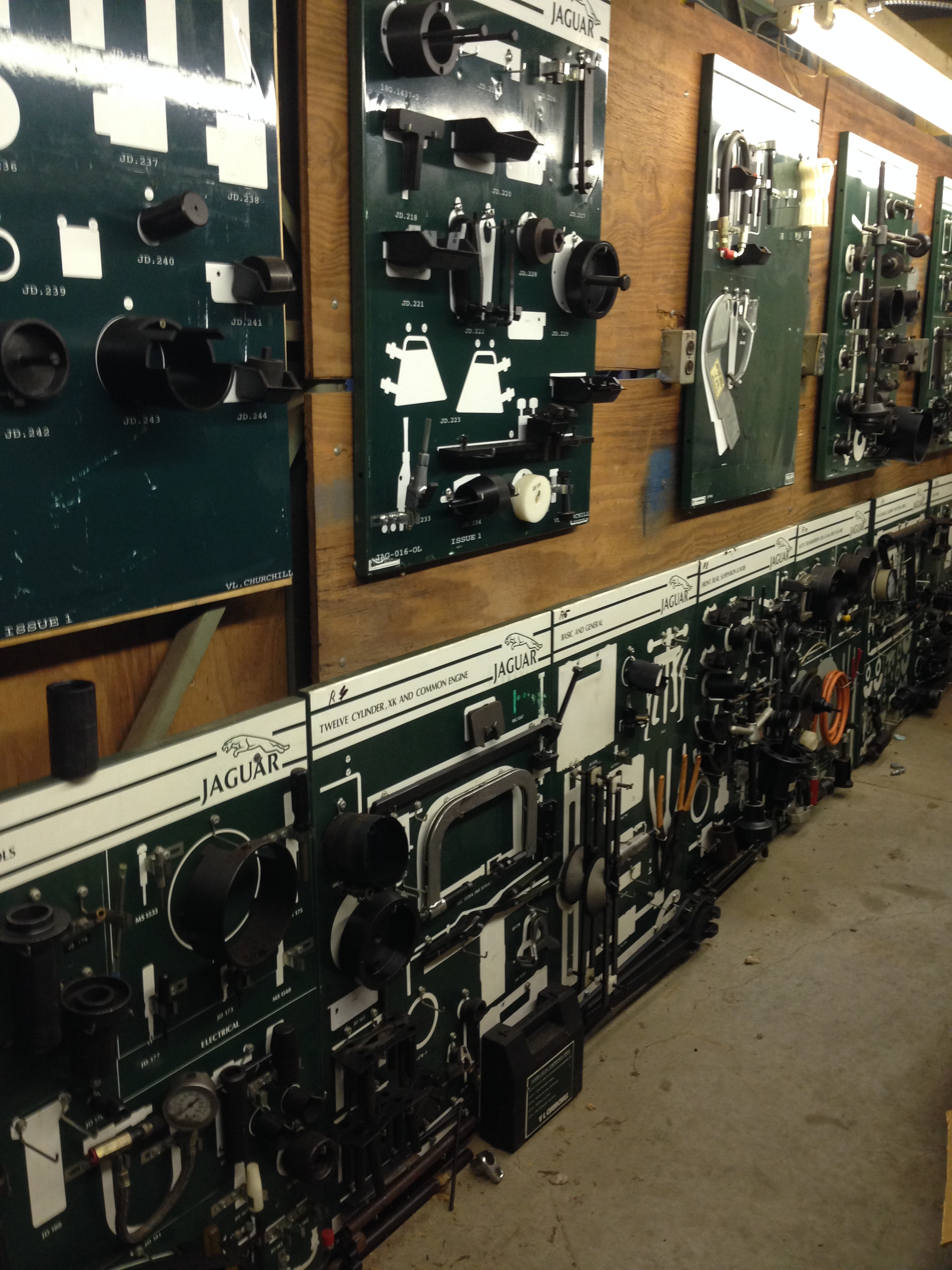 Another treat that I found at Coventry West is the fact that Dick is running the JCNA Tool Loan Program. This program is a free benefit to JCNA members. It is discussed in detail here. Dick has these British racing green boards loaded to the gills with the original tools provided to Jaguar dealerships for their mechanics to use in repair and maintenance of our cars. He also has a lot of print material for the older cars and microfiche and CD-ROMs for the newer cars. Be sure to check it out as part of your JCNA membership.
