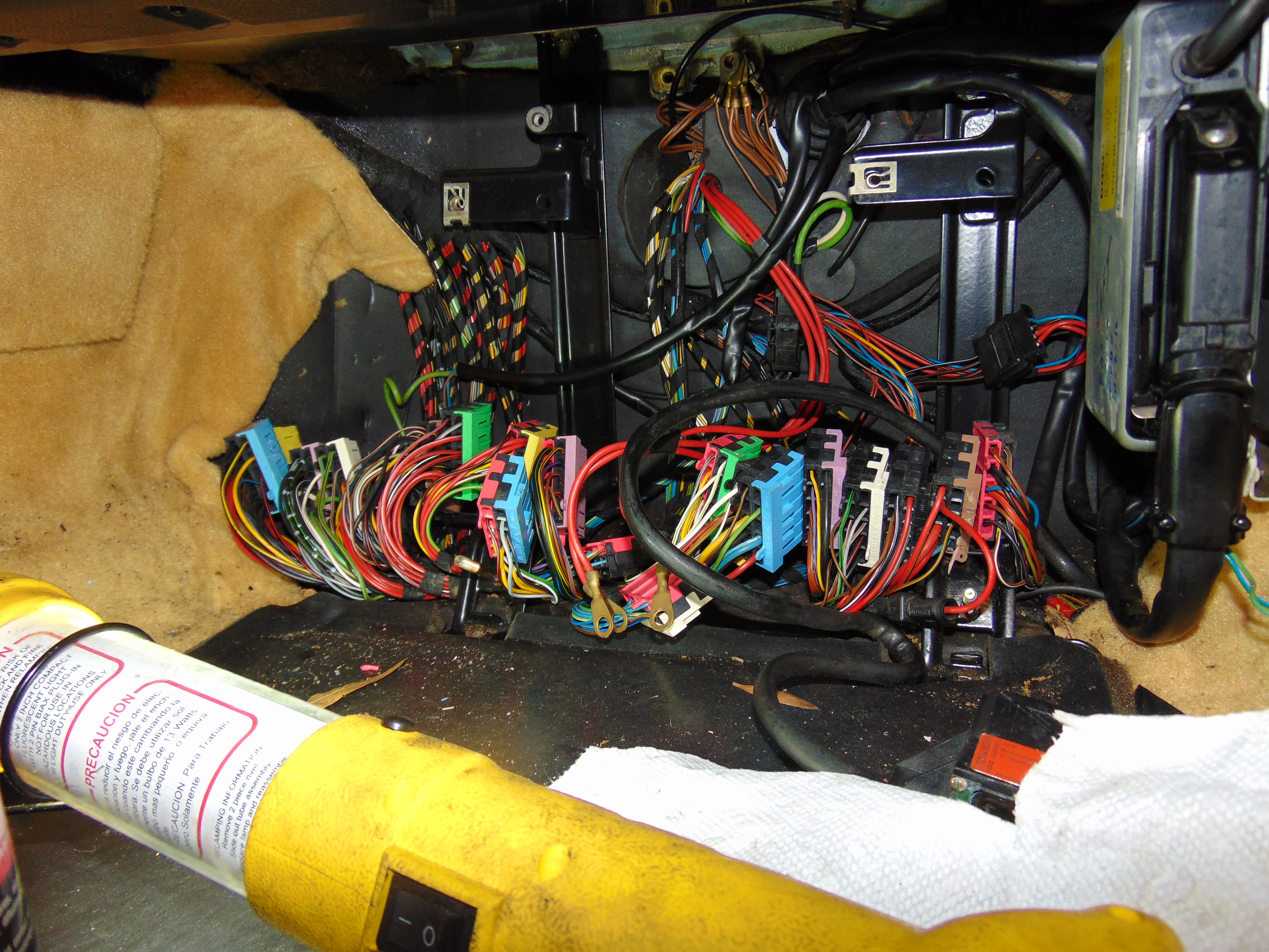 First I spent a lot of time reading forums such as Rennlist. I also bought a CD crammed full of shop manuals and tutorials by experts such as Wally P. I was even fortunate enough to obtain a set of paper shop manuals. There seemed to be a couple of recurring themes. Electrical issues and vacuum issues. Earlier this year I used a tutorial off the Rennlist 928 forum “sticky” NEW VISITOR? Here are some answers to frequently asked questions. to tackle the clean up of ground points, most of which are in the engine bay or in the passenger footwell. I also replaced the ground strap at the battery. A major task remained, that being cleaning up the Central Electrical Panel, also located in the passenger footwell. There are several good tutorials on Rennlist regarding this job so I won’t go into too much detail. And without further suspense, here is what the beast looks like!