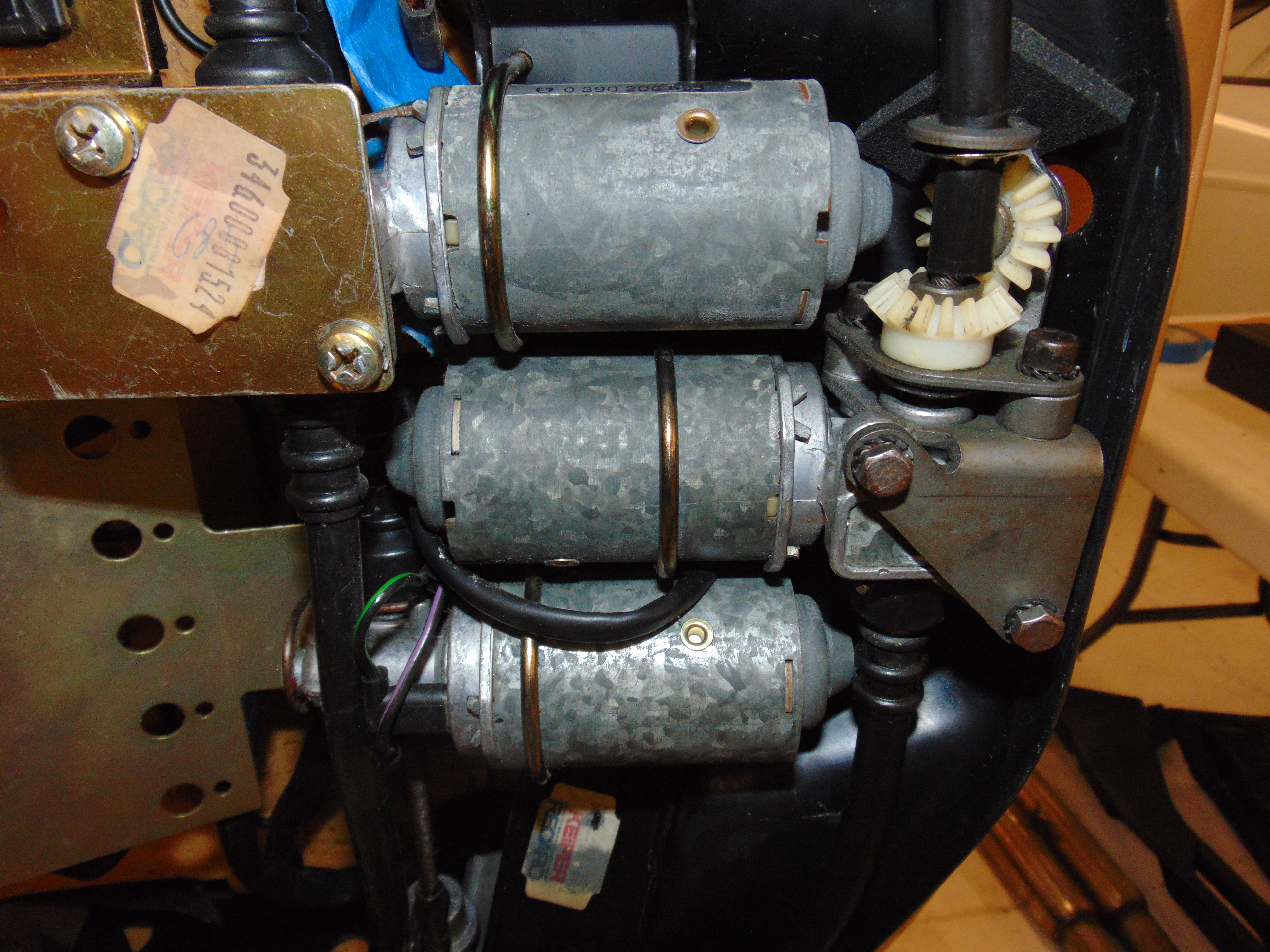 It is a clever arrangement. The closeup shows the 3 drive motors. Each motor drives flexible shafts. The middle motor turns the threaded rod that moves the seat forward and backward. At the 4 corners there are short threaded shafts that are oriented vertically. Rotating all 4 the same direction raises the seat. Rotating the front 2 in the opposite direction of the rear 2 tips the seat bottom. Again, very clever.