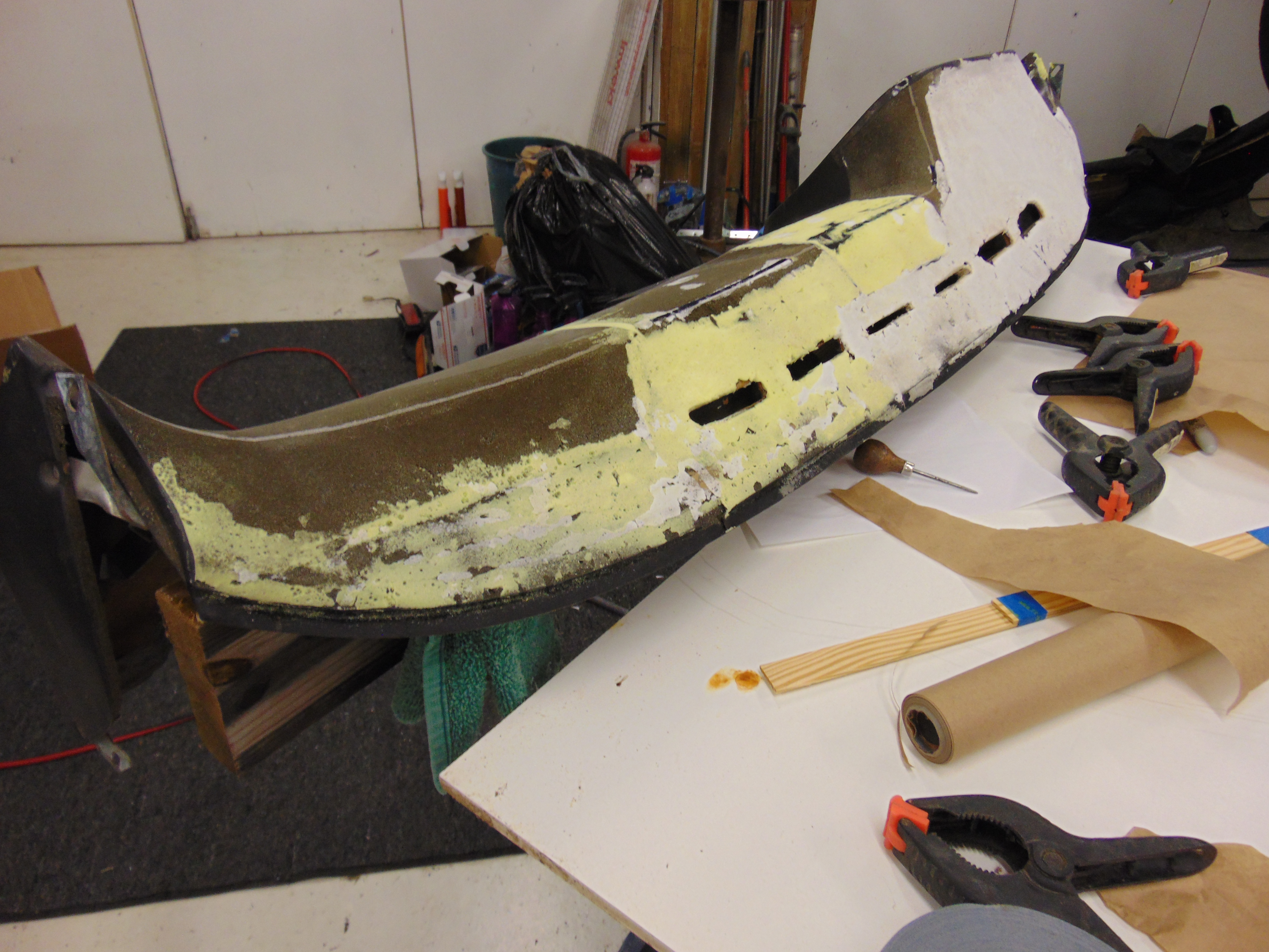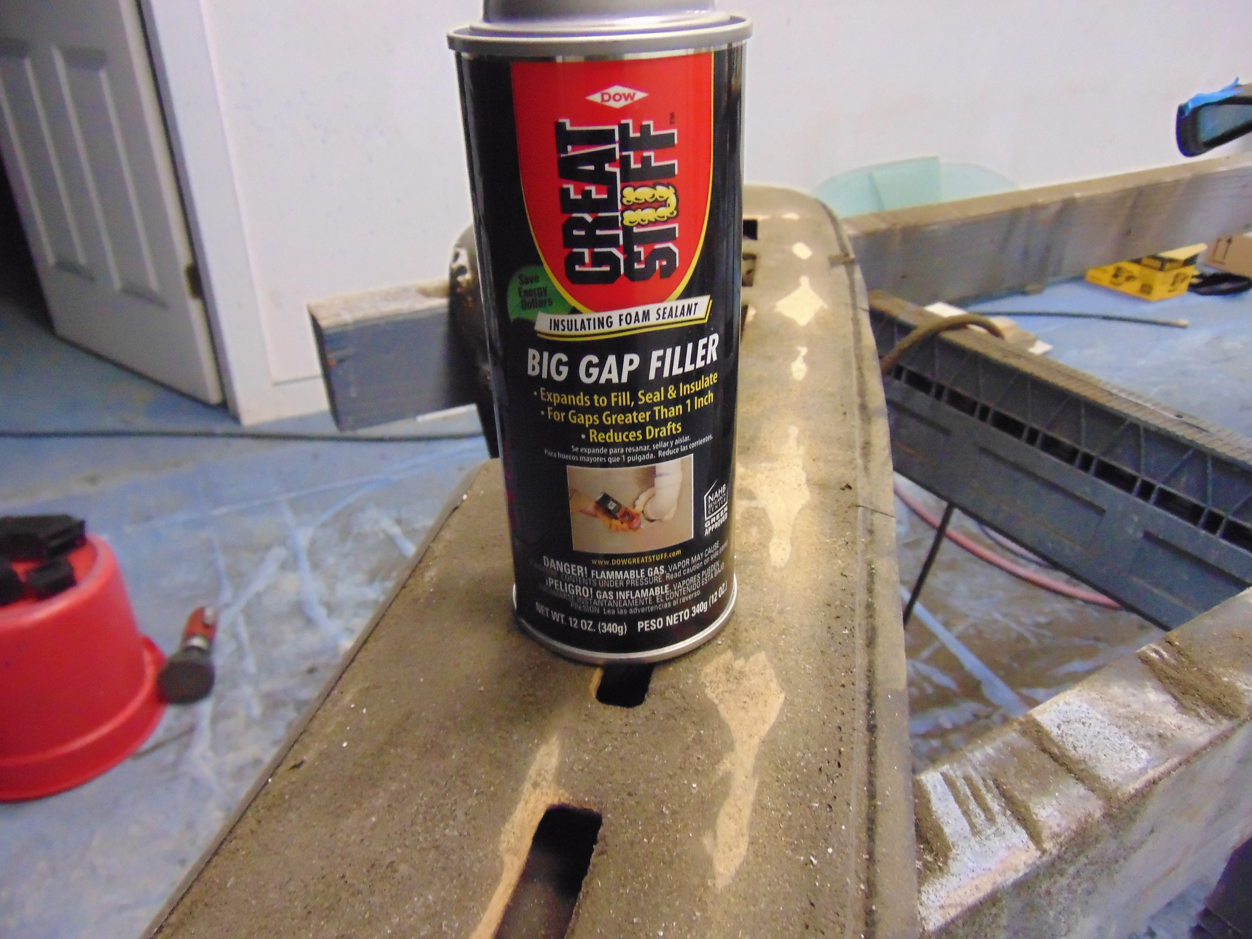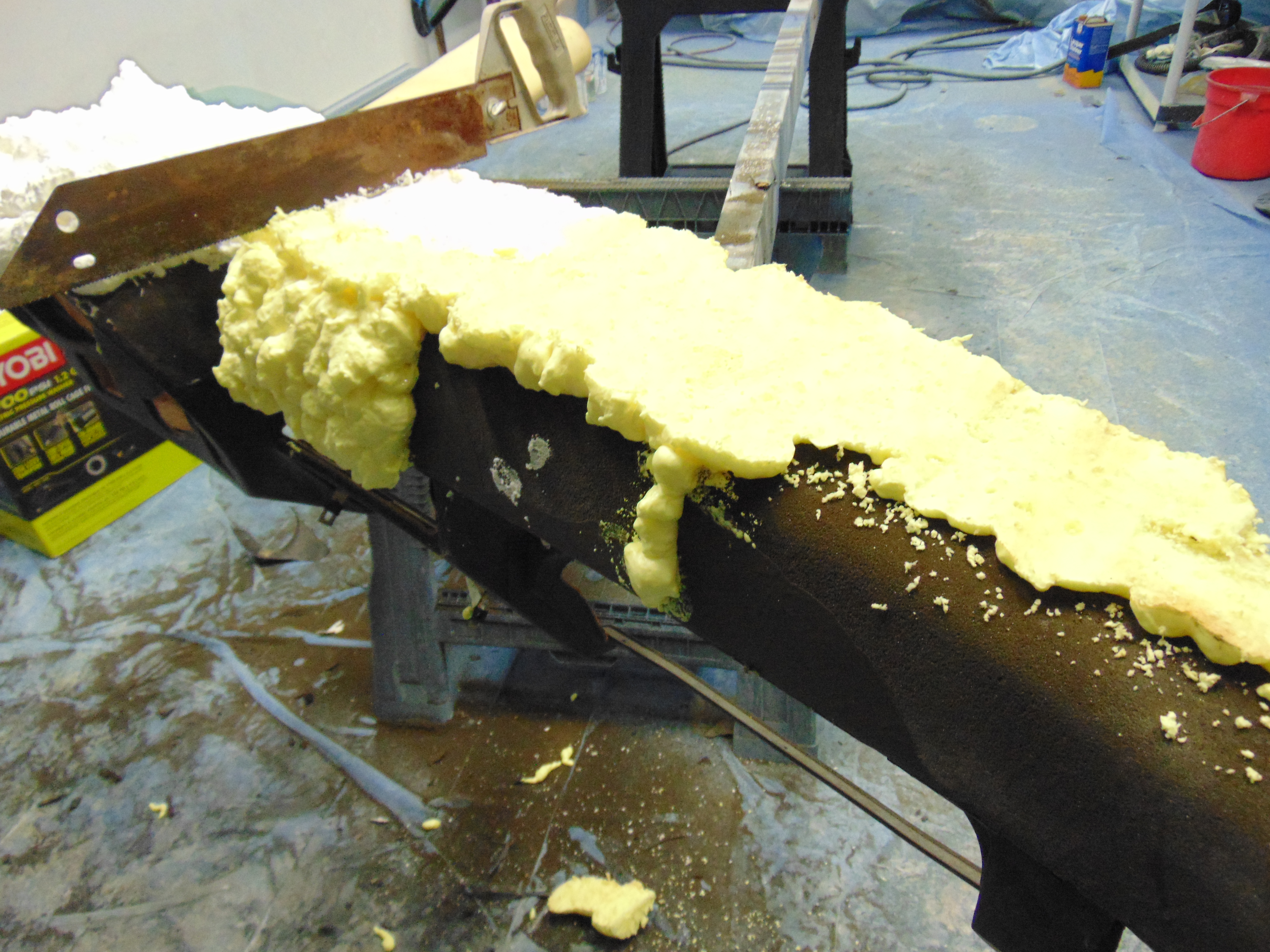 Now for the fun part! I used expanding foam to build the surface back to the proper profile. Below are some progress pictures. I found that the Locktite foam (purchased at Home Depot) dried to a more dense consistency and provided a superior surface for laying in the new vinyl.