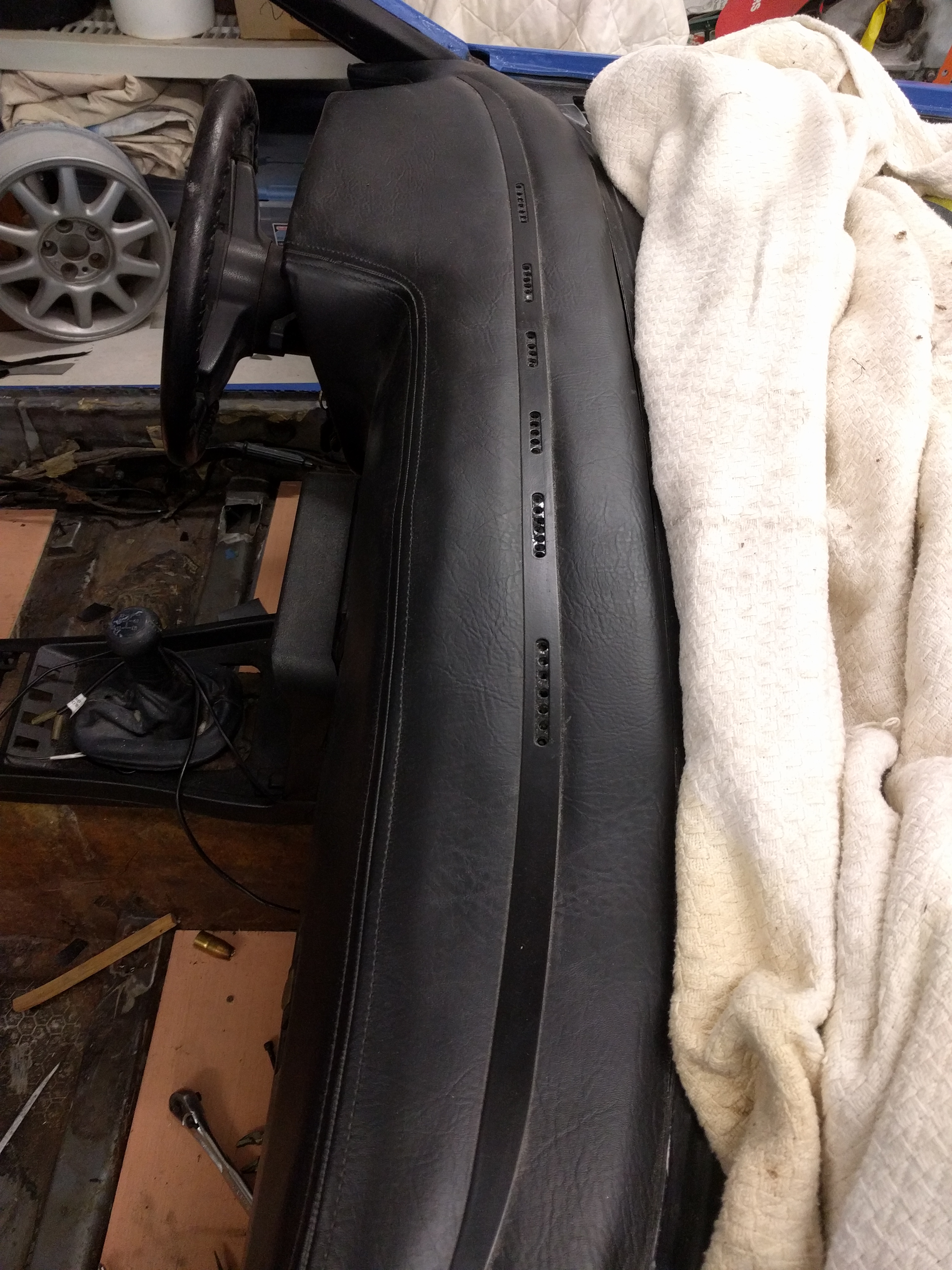 I removed much of the vinyl and foam on the flat horizontal area of the dash.