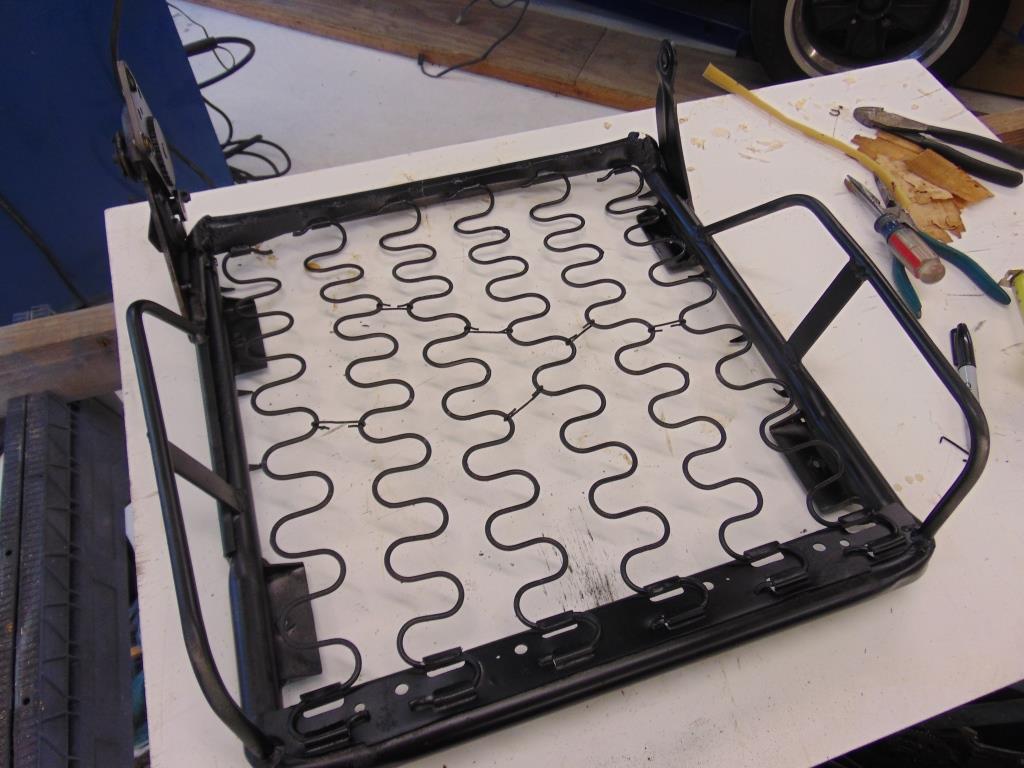 Components of the seat laid out after dis-assembly. Note the cloth was actually black where not exposed to the sun.