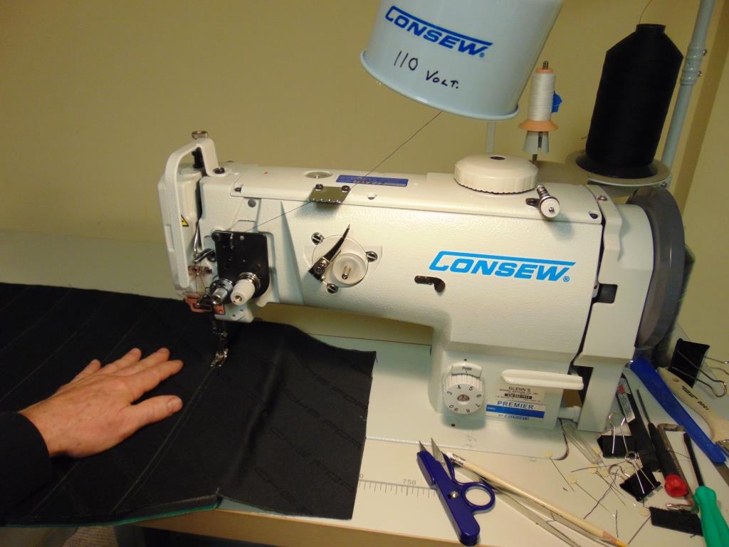 A word about sewing machines. My sewing machine is a “walking foot” type machine. In general that means that there is a serrated foot on the machine that marches forward in time with the sewing and positively moves the fabric forward the correct amount. It is capable of dealing with very thick layers of fabric. Beyond that, it is pretty simple. It will only do a straight stitch. No zig-zag, etc. I purchased this machine retail from an old line sewing machine supply store in NC, specifically Glenn’s Sewing in High Point. I think you can get one a little cheaper on the internet but be advised that this is a very heavy machine. It comes with a table, foot operated speed control, knee operated presser foot release, and a synchronous motor that allows slower speed operation. It is complex and bulky to the degree that I decided to purchase it from a bricks and mortar store. I do not regret the small price premium I paid in order to buy from folks with good knowledge about industrial sewing. It is a Consew P1541S. You will want to understand how to keep the machine lubricated, adjusted, and “in time”. Cechaflo has a video in this regard here. And he has several others about understanding how a sewing machine works and how to make adjustments.