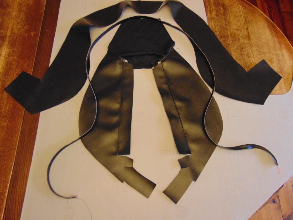 Here is the bottom seat insert with the foam double stitched across and the various vinyl pieces attached around the perimeter.