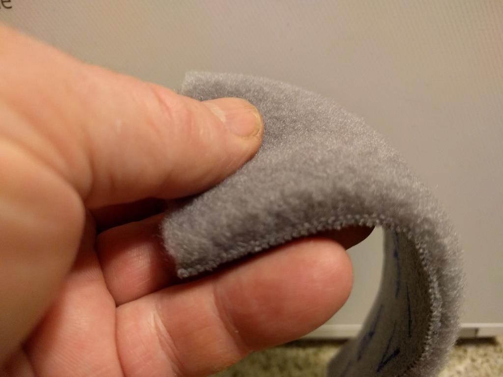 Next on my agenda, after working on the sport seats, was replacement of the bio-hazard carpet in the 944. Also on my agenda was the implementation of some “RS” style door panels. The period correct carpet for an 80’s Porsche would be “Sliverknit” carpet. One definition of Sliverknit that I have seen is that the tufts of the carpet are split so that they absorb dye more readily. It is also a very lightweight carpet, simpatico with my efforts to reduce the weight of the car. I am not a big fan of “triple black cars” and wanted a carpet that tied together the blue exterior with the black sports seats. After consultation with my wife, we selected a silver-blue carpet, which I purchased from GAHH. The carpet is very light weight, with a minimal backing. I ordered 5 yards of carpet, which was just barely enough to do the job.