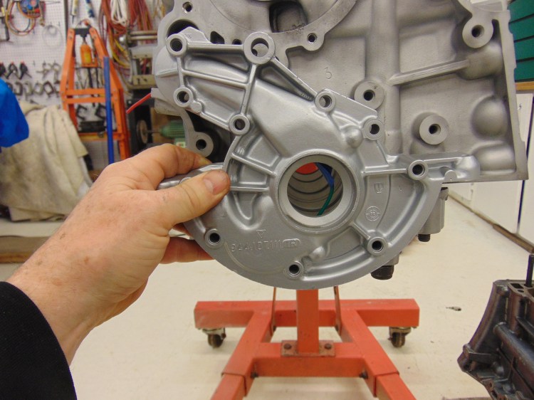 Finally, a view of the oil pump 🙂 What an intricate and beautiful casting. The nose of the crankshaft will emerge from the hole in the middle of the pump.