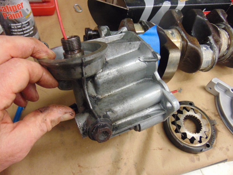 BTW, the pickup tube shown is a brand new OEM piece and is being held into position on the crankshaft girdle. I wanted to install a new pickup in my track engine, as there is anecdotal evidence that the weld at the tube to its fitting can fatigue and crack.