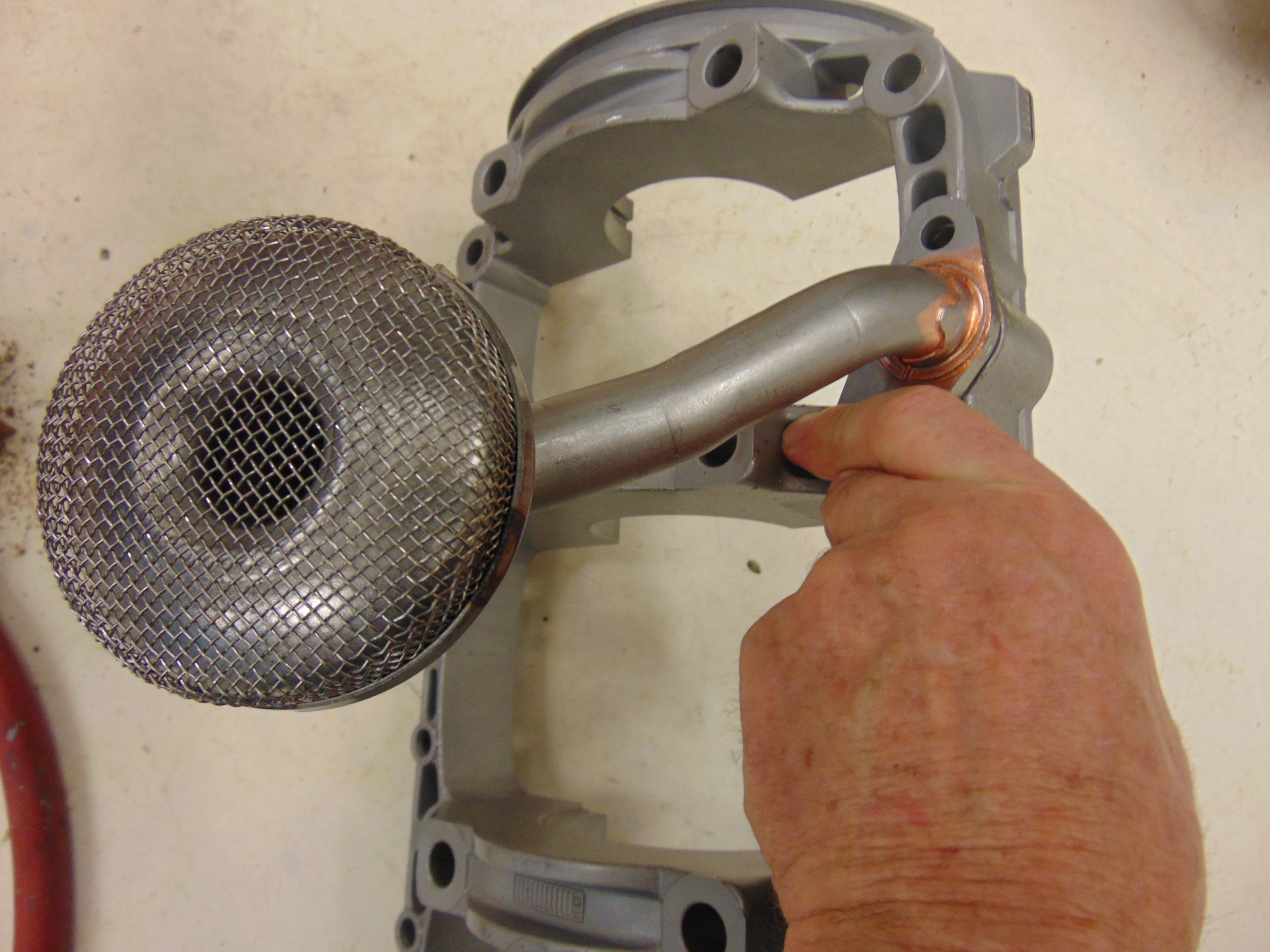 BTW, the pickup tube shown is a brand new OEM piece and is being held into position on the crankshaft girdle. I wanted to install a new pickup in my track engine, as there is anecdotal evidence that the weld at the tube to its fitting can fatigue and crack.