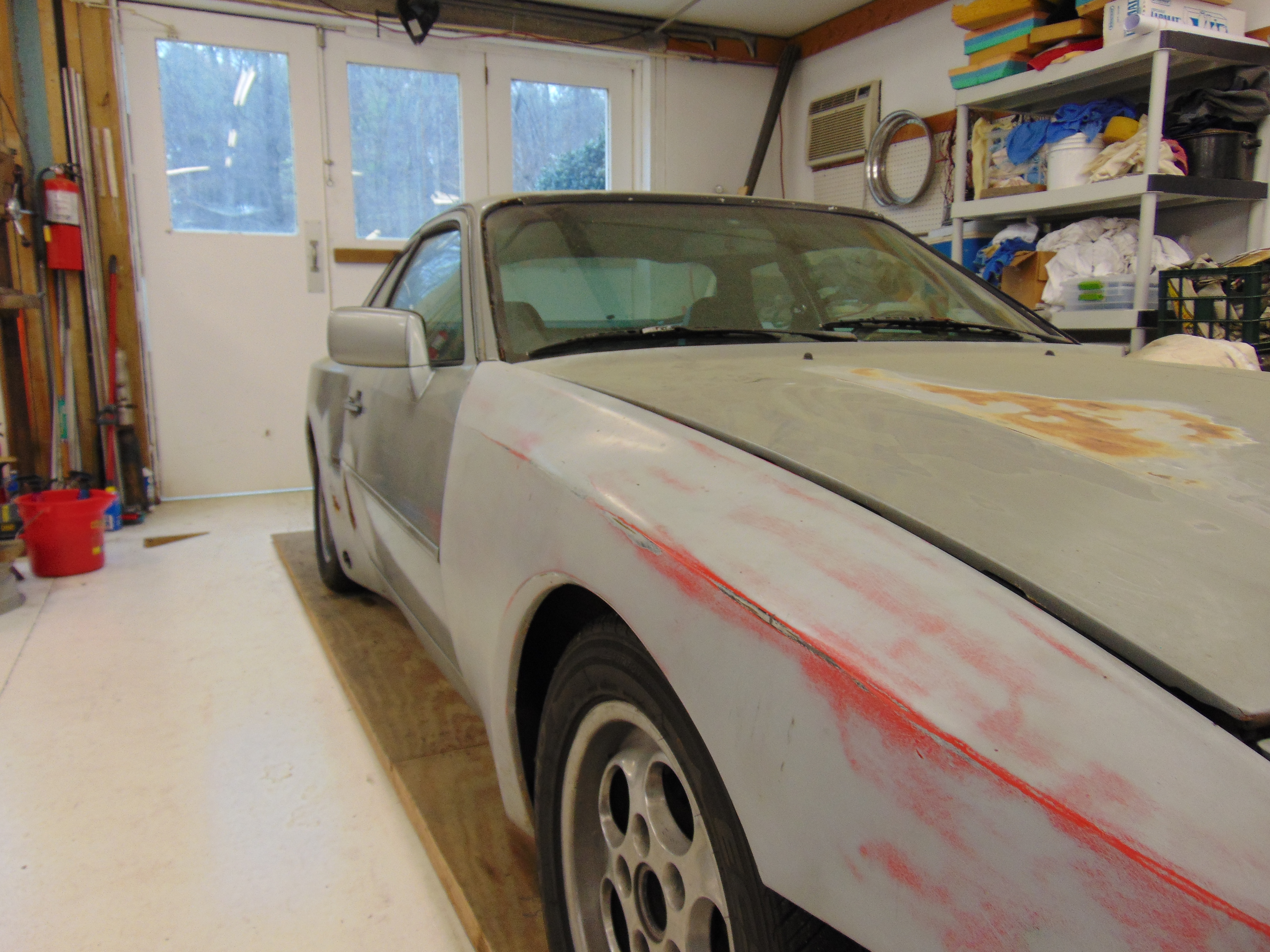 I purchased this car about 5 years ago out of South Carolina. Let me be clear. When I bought it, this car was in poor condition. I was attracted to it because I wanted to have a second 944 in my garage to use as a backup to my 944 track car. It had Fuchs wheels and sport seats. The engine started and ran. But the cosmetic condition of the car was poor, with the exterior showing poorly applied bondo and grey primer in several areas. The dash was horrible. The sport seats were complete but very soiled. I didn’t want to think want was embedded in the carpet!