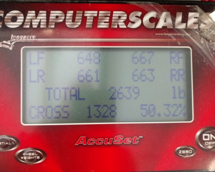 It was about this time that I started to think about an “R” concept. To my knowledge, Porsche never made a 944R. But based on what they have done historically with the R spec in the 911 world, I came up with some general guidelines. Weight reduction. More aggressive suspension. Sport seats. Simple door panels. Lightweight wheels. And an engine carefully assembled to the tightest of tolerances. I was practically already there with my build! For both weight and appearance purposes, I removed the front and rear rubber bumperettes, as well as the side moldings. I removed sound deadening from the floor boards. The radio was deleted. There was one short time in the build where the car weighed just a bit under 2500 pounds. This was without any fluids in the car and no spare tire or jack. Posted below are the most recent scale weights of the car in normal street configuration, with roughly a 1/2 tank of gas. The weight is 2639 pounds. Also note the excellent weight distribution from front to rear and side to side.