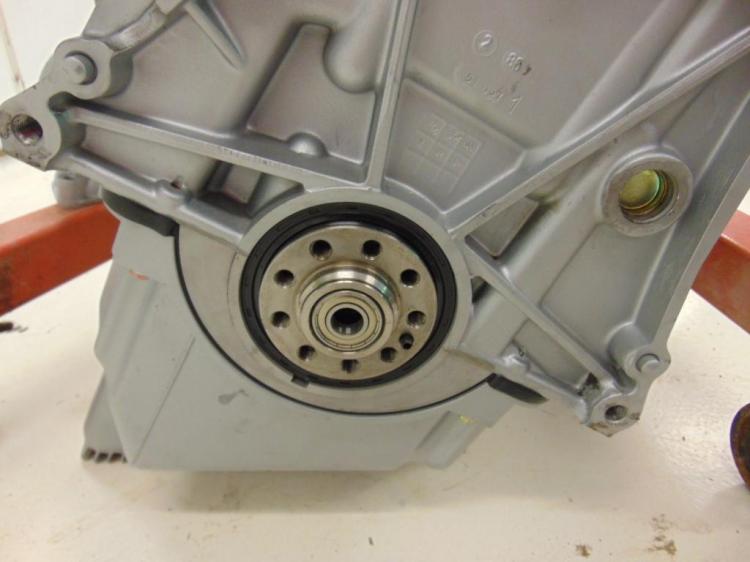 The small window in the bellhousing is adjacent to the two crank sensors and is at roughly a 11 o’clock position when looking at the rear end of the crankshaft. You will want to clean this line up and maybe even mark it with high visibility paint so it will be easy to spot when you are checking timing. Anyway, find this mark. Then on the end of the crankshaft, there is a locating pin that engages a matching hole on the flywheel so the flywheel can only be installed at one location.