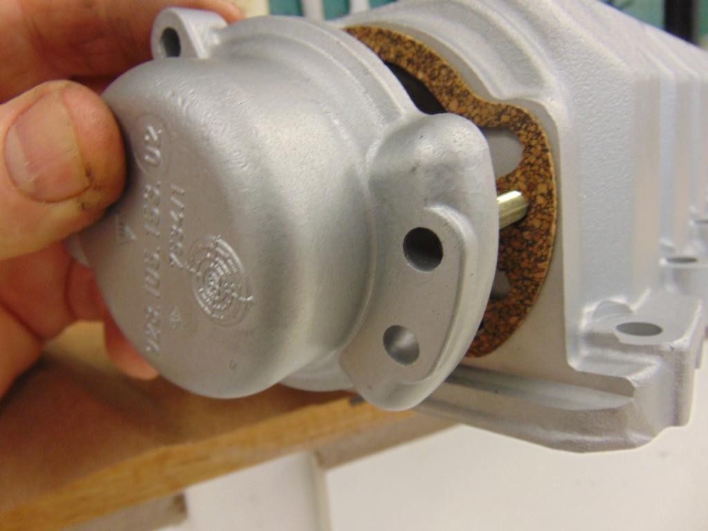 As it is what I like to do, I removed my cam and did a thorough cleaning of the interior and exterior of the tower. Although I generally use glass beads for cleaning, if you do be very careful. Do not blast the interior surfaces where the cam bearings ride and/or the openings where the hydraulic lifters ride, as these are highly polished surfaces and need to stay that way. Also be aware that there is an oil feed to the cam tower from the block. If you look towards the rear of the cylinder head, there is a small (~1/4”) hole sticking straight up. It matches up to a mating hole on the cam tower. This is the oil feed from the main oil gallery in the block. See 944 Oiling System Explained for more info. You will want to make sure this passageway is clear by blowing solvent and compressed air through it. Ditto for the mating passages in the cam tower and the cam itself. Once everything is clean, apply some oil to the cam journals and re-insert the cam into the tower. You should replace all the gaskets at the rear and front of the cam tower that come with your gasket kit. The big cork gasket at the back end and the rubber o-ring at the front end are pretty obvious. A bit of sleeper is the small (~⅜”) round gaskets at the front cover for the oil feed hole.