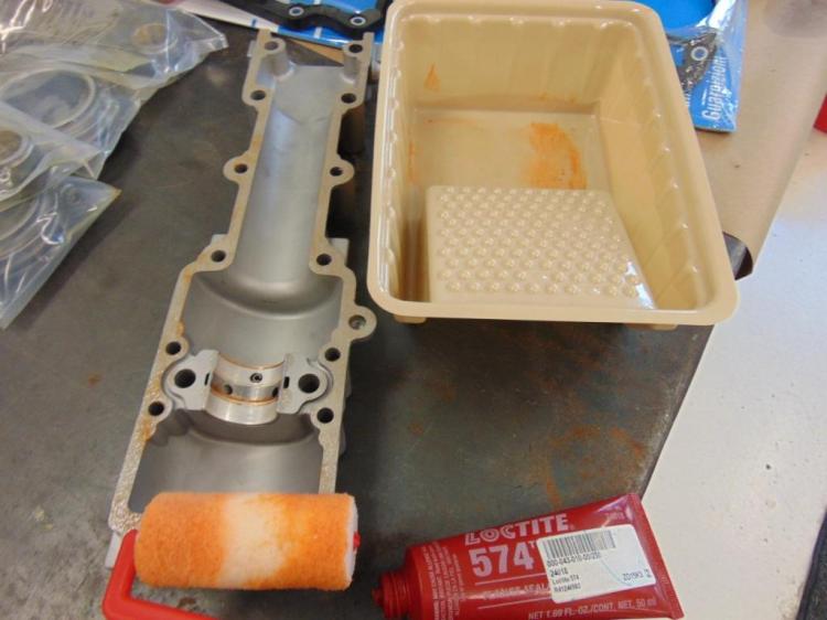 Beyond those items and a thorough final cleaning of the crankcase area with brakeclean, it is time to install the oil pan. But first, I would like to mention a couple of things about the oil pan. The article I have written here, about the Porsche 944 oiling system, describes some attributes of the system. One thing that I like is to use the oil pan from a later car that has the built in scraper for the crank. As discussed in the same article, I am not very convinced that the trap door mechanisms sold as an aftermarket fix to rod bearing failures are necessary. But I’m not going to hash that out here. Use your own judgement. Finally, if you have the plastic oil pan baffle with plastic tabs (versus screws) that hold together the hollow void that is part of the baffle, I would recommend getting a new baffle,. I have found too many of these baffles with broken tabs to trust them at this point. Also, inspect the oil drain plug. If the threads are goobered up, now is an easy time to repair them with a helicoil.