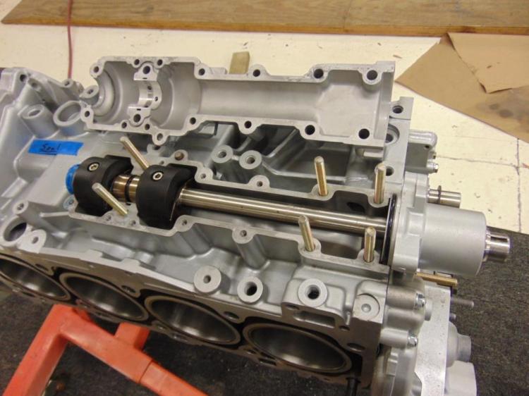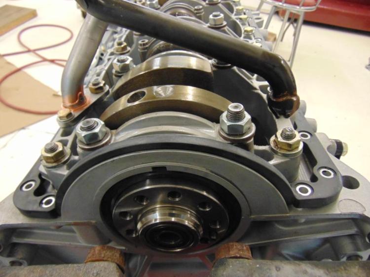 Last but not least, it is time to install the balance shafts. I don’t know if it was just me but I had a hard time getting the balance shafts installed such that they would rotate freely by hand. Wanting to do a thorough job, I replaced the balance shaft bearings. There are 1/2 shell bearings on the interior end of the bearing and fully circular bearings at the outer end. The fully circular bearings must be pressed in. The 1/2 shell bearings install just like the rod bearings. I did not check the bearing clearances with Plastigage and there is a chance that I ran into some mis-manufactured bearings. At my first installation, one balance shaft would not turn at all by hand. I purchased an additional set of bearings and after using them, it turned but still seemed very stiff. I think the final part of the puzzle is to torque the various fasteners rigorously in accordance with the pattern and values shown in the workshop manual.