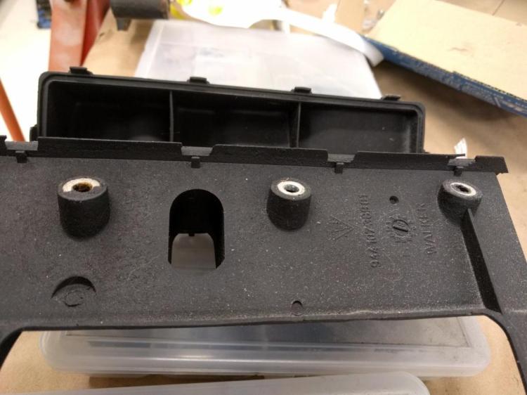 Balance shaft cover in place. Note that this is a cover for a turbo engine and it thus has an oil feed opening, which I will have to plug.