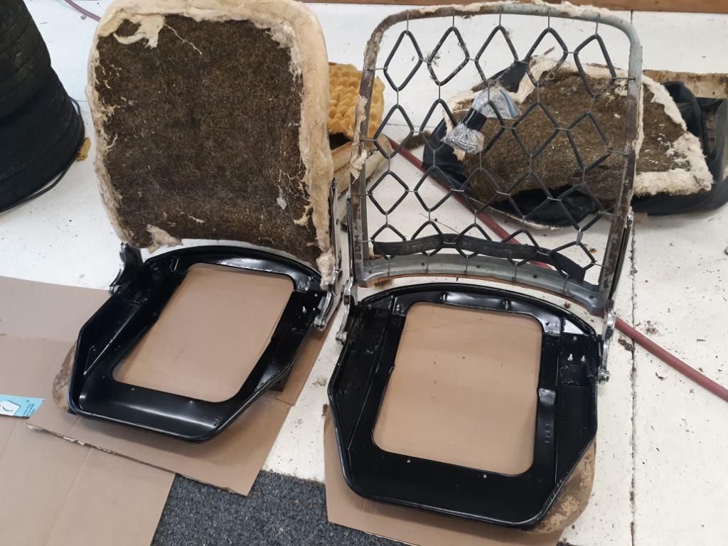 Now for that last 10%. I’ve got the following issues that are going to hold me up for at least a few months. Most annoying is that I suddenly spotted a crack on the passenger side of the front windshield. I am gobsmacked but it’s there. The only thing I can figure is that the single post lift, which engages the car under the front firewall and rear trailing arms, causes the engine weight to torque the chassis and the frame for the window. Man, that hurts. I have a new windshield on order from SNG but of course they are backordered. Another thing I found was that the chrome trim just under the windows on the doors is not up to snuff. It looked pretty good when I took it off but not so much now in comparison to all the new chrome elsewhere. So those pieces are off to Pauls Chrome, which usually has an 8 week turnaround time. Last but not least, although it seemed like a good idea 10 years ago, my decision then to go with Series 3 seats means I would take a major originality deduction in a JCNA concours event. So I am biting the bullet and getting the original seats from the car retrimmed by BAS. Another 8 week leadtime.