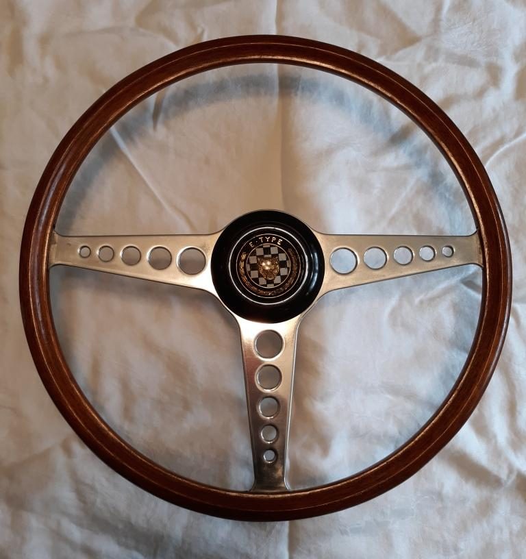 I also took the opportunity to spruce up the steering wheel. During my original restoration, I had gone with a replacement wood rim obtained from British Autowood. It is a little thicker than the stock rim. A lot of folks like the thicker rim, as the stock rim feels too delicate to them. I originally stained the rim and topcoated it with tung oil. I like the tung oil finish because it is not hard and slick like a modern polyurethane finish. You know you are grabbing a real wood wheel, not some plastic facsimile. This time, after some internet sleuthing, I decided to go with a lacquer topcoat. It’s a little more slick and shiny than the tung oil but you still can feel the wood grain, which is nice. I also polished up the aluminum spokes and the black bakelite horn push on my buffing wheel, with nice results. And I confirmed that the horn works. Many don’t!