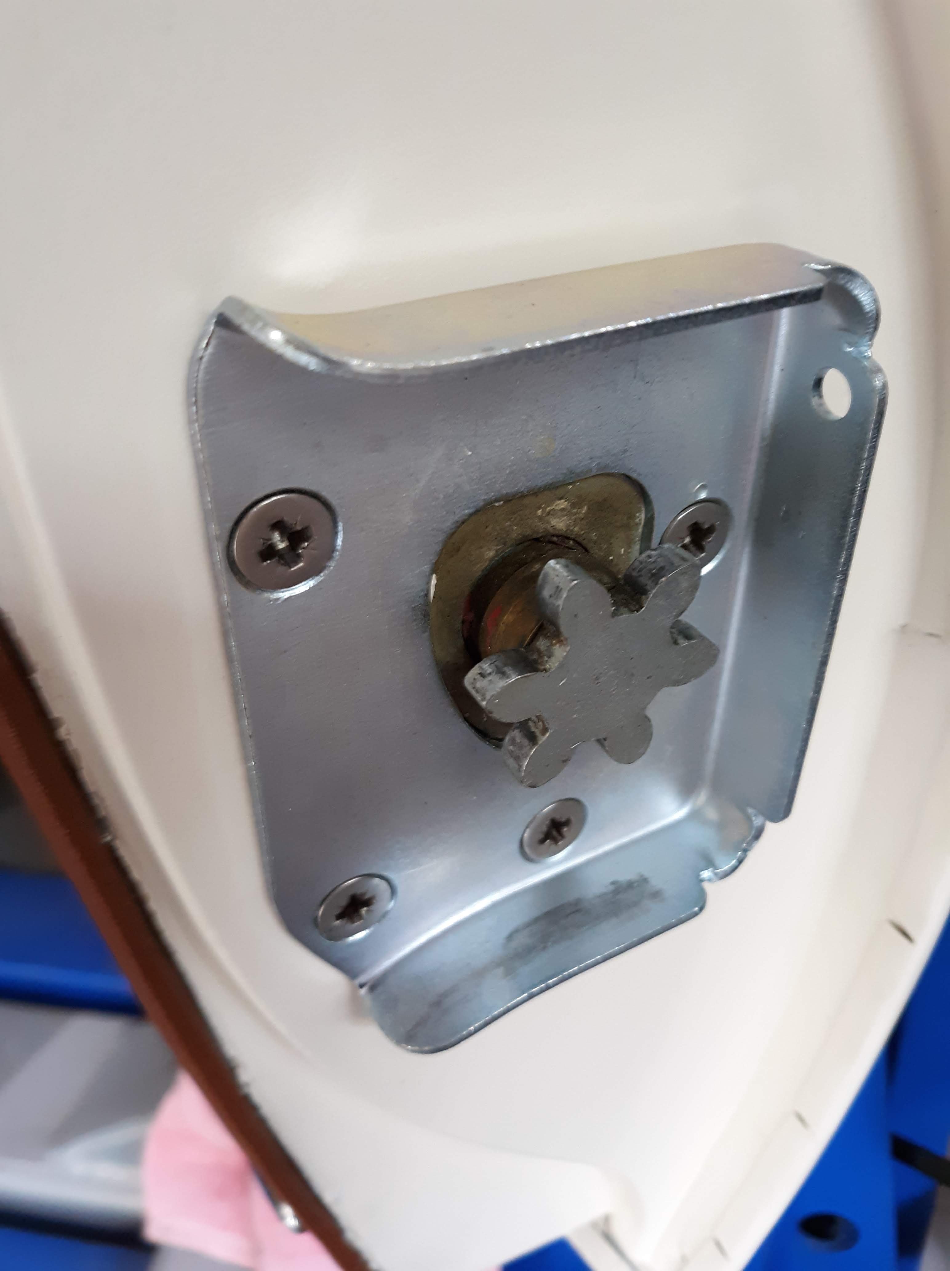 How to fix it? Initially, I thought about using JB Weld or 2 part epoxy. I would not rule this approach out but I have two concerns. Will this material be strong enough for the task? And if any oozes down into the latch, it could lock it up from turning. Instead I I used my MIG welder to add material to the shaft, when I then ground back to match the opening in the star wheel. I did apply some blue Locktite to the threads of the phillips head screw. This screw should not be overly tightened, since if it is too tight, the assembly will not rotate freely. So the Locktite should hold the screw in the correct position.