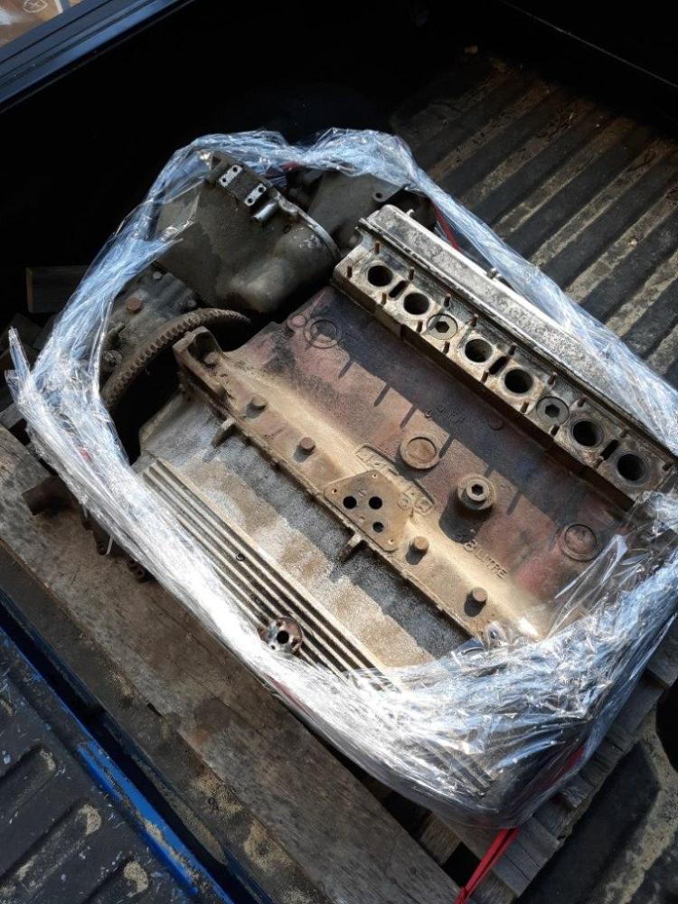 As I may have mentioned before, my plan is to send my engine, transmission, and differential to Dick Maury at Coventry West for rebuilding. In order to get that ball rolling, I stripped some peripheral items off the engine and laid it down on a stout pallet that a landscaper gave me. The pallet is 4′ square. There is plenty of room on it for the engine, the transmission, and the differential. I used my race car scales to weigh each item. The engine, without the clutch, harmonic balancer, manifolds, etc. weighed in at 470 pounds. The transmission and the differential both weighed about 100 pounds. The pallet weighed 65 pounds for a total shipping weight of 750 pounds. Truck freight from NC to Atlanta was less than $200. I sent them on their way yesterday.