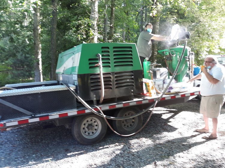 Media blasting is the modern term for what used to be called just “sand blasting”. Sand has fallen out of favor, mostly because the silica in real sand was causing lung damage to the guys that had to sand blast every day. Workarounds have ensued. Glass beads is a term I hear a lot. And of course there are is a wide variety of materials used to blast, depending on what the requirements are. Anyway, the father/son team that did my job is O’Tooles Mobile Dustless Blasting out of Durham, NC. The mobile part is they come to you. The dustless part is they can work with a slurry of water and media, which knocks down the dust and keeps the sheet metal cool. In my case they did traditional dry blasting with a silica free glass media. It’s looks like beach sand.