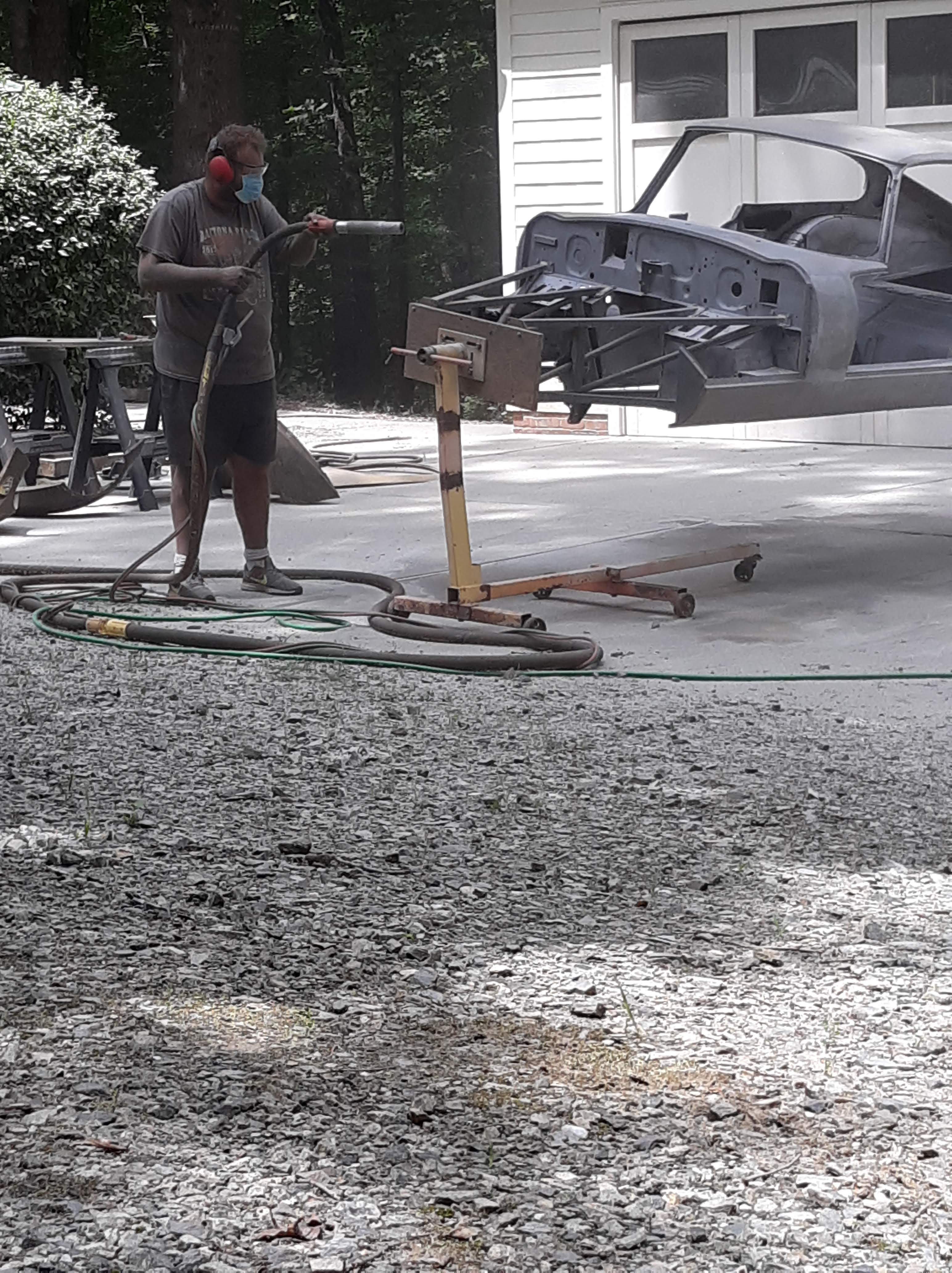 Today was a big day. The mobile media blasters showed up and cleaned up all the important pieces back to bare metal.