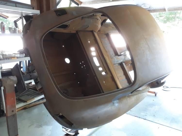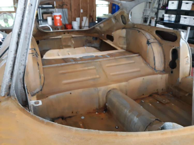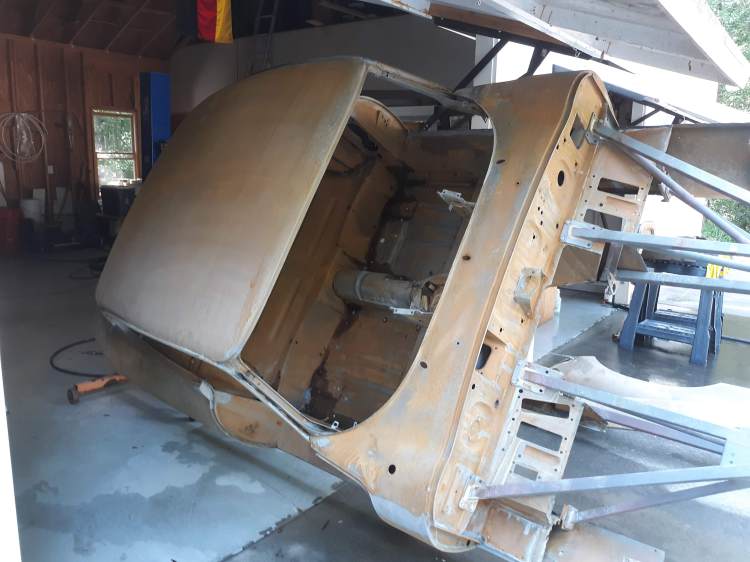 Months ago, I started thinking about having the body shell media blasted. That led to me thinking about what to do right after it was blasted. In general, the car was in stable condition with original paint or newish primer (that I applied 15 years ago). I knew that as soon as I had the steel body media blasted, at some level, maybe microscopic initially, that rust would begin to form. What to do?