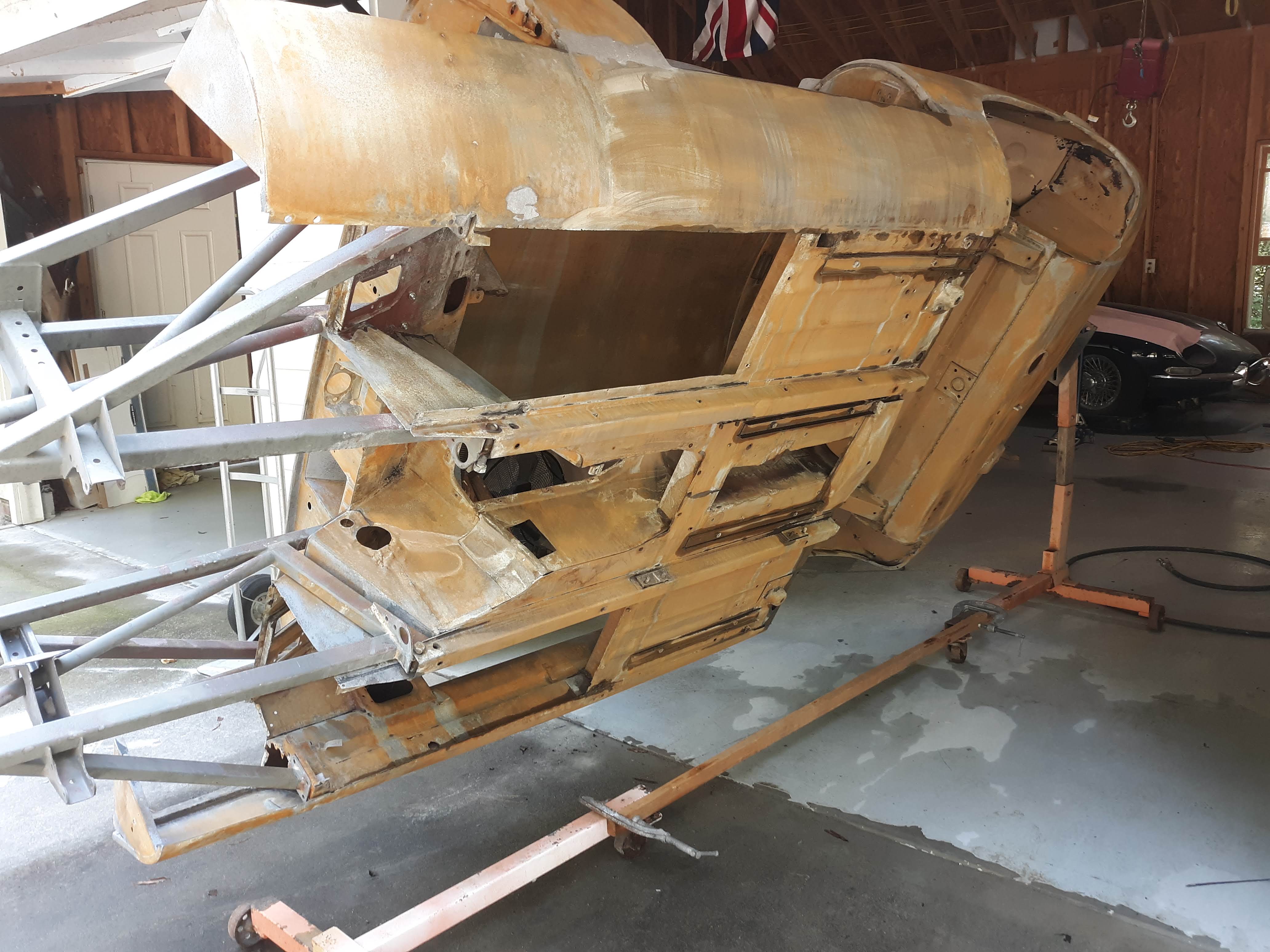 Months ago, I started thinking about having the body shell media blasted. That led to me thinking about what to do right after it was blasted. In general, the car was in stable condition with original paint or newish primer (that I applied 15 years ago). I knew that as soon as I had the steel body media blasted, at some level, maybe microscopic initially, that rust would begin to form. What to do?