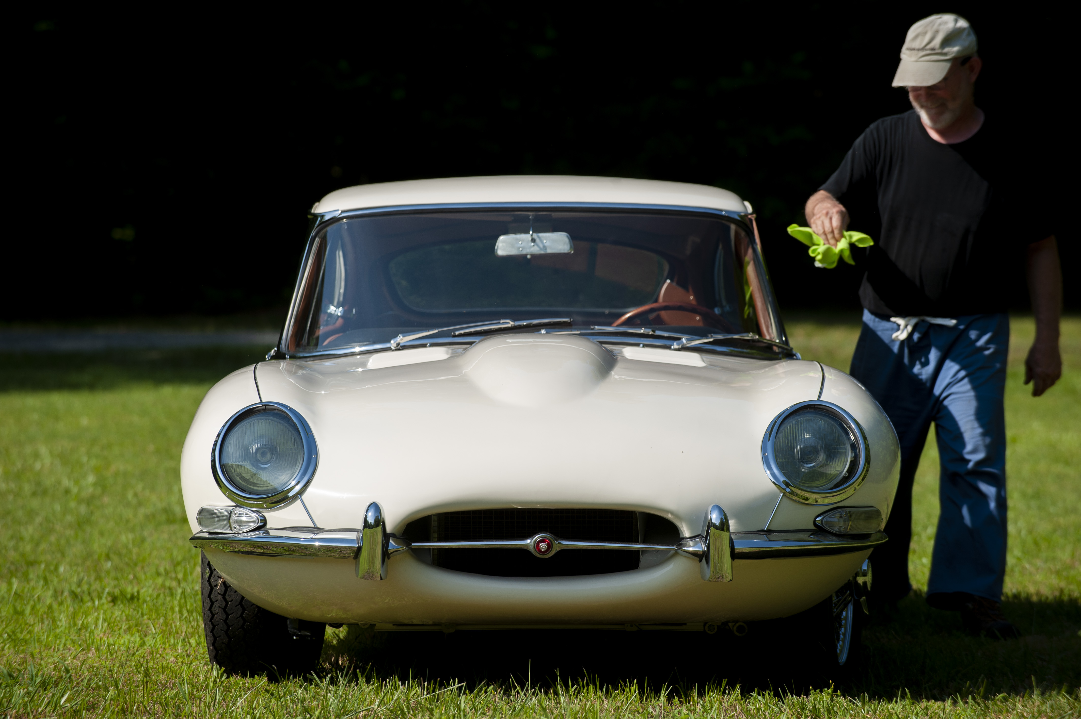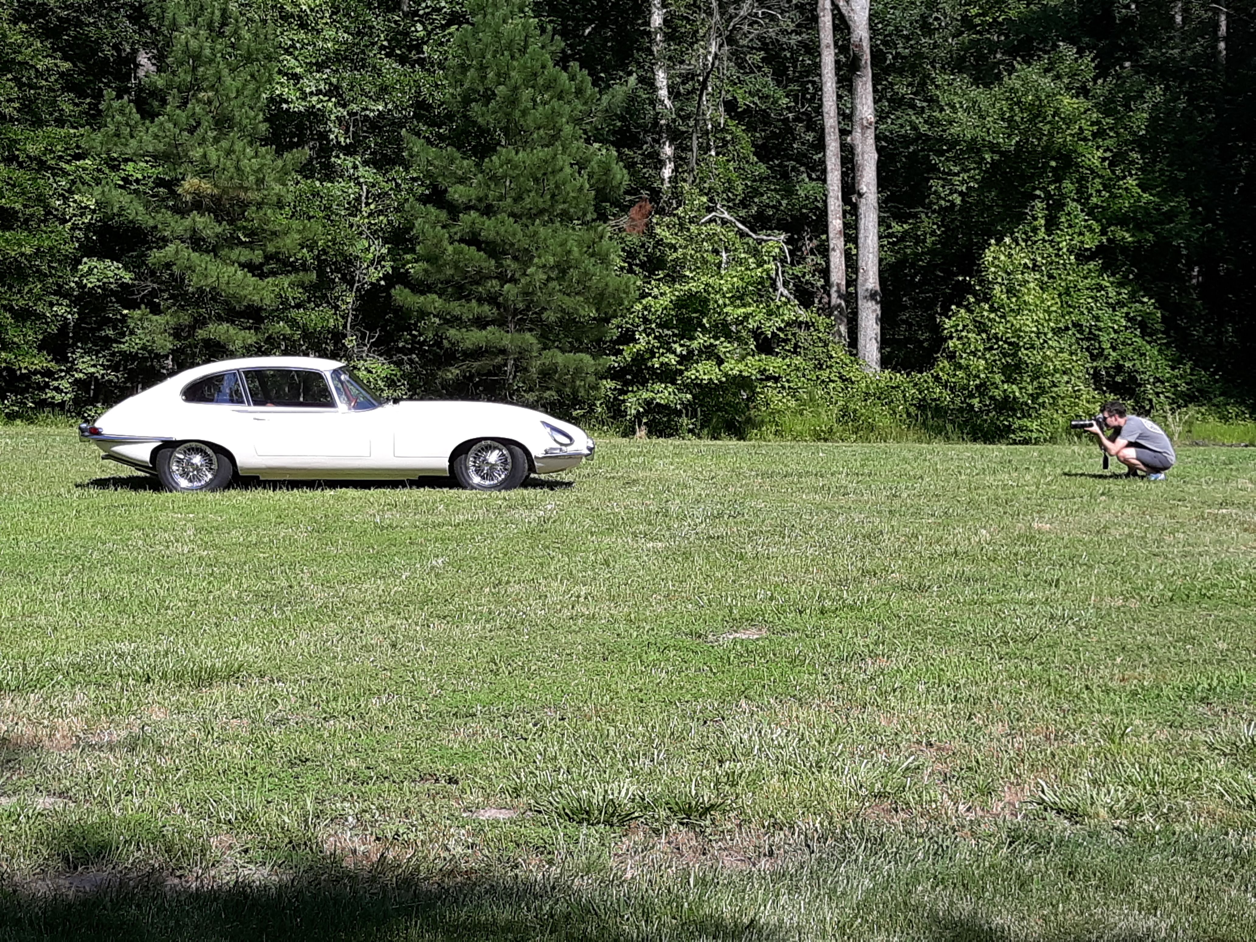 The 67 Etype 2+2 Restoration 2.0 is basically done, with the remaining issues basically the result of road test niggles. My son-in-law, Andy, was quarantined with us for several months. He is a gifted photographer with a MS in Fine Arts. I asked him to take some photos of the car. We discussed venues and with Covid, decided there was nothing wrong with the field in my front yard. For the shots of the overall car, he used a “long” lense that tended to blur out the background. Closeups are of course just that, nothing fancy, they just concentrate on interesting details of the car, of which there are many. He has a great eye for spotting and framing interesting closeup shots. He ultimately presented me with several hundred shots. That’s a lot! I picked out of few of my favorites to post in the body of this article. Many others are in a Gallery at the end. Enjoy!