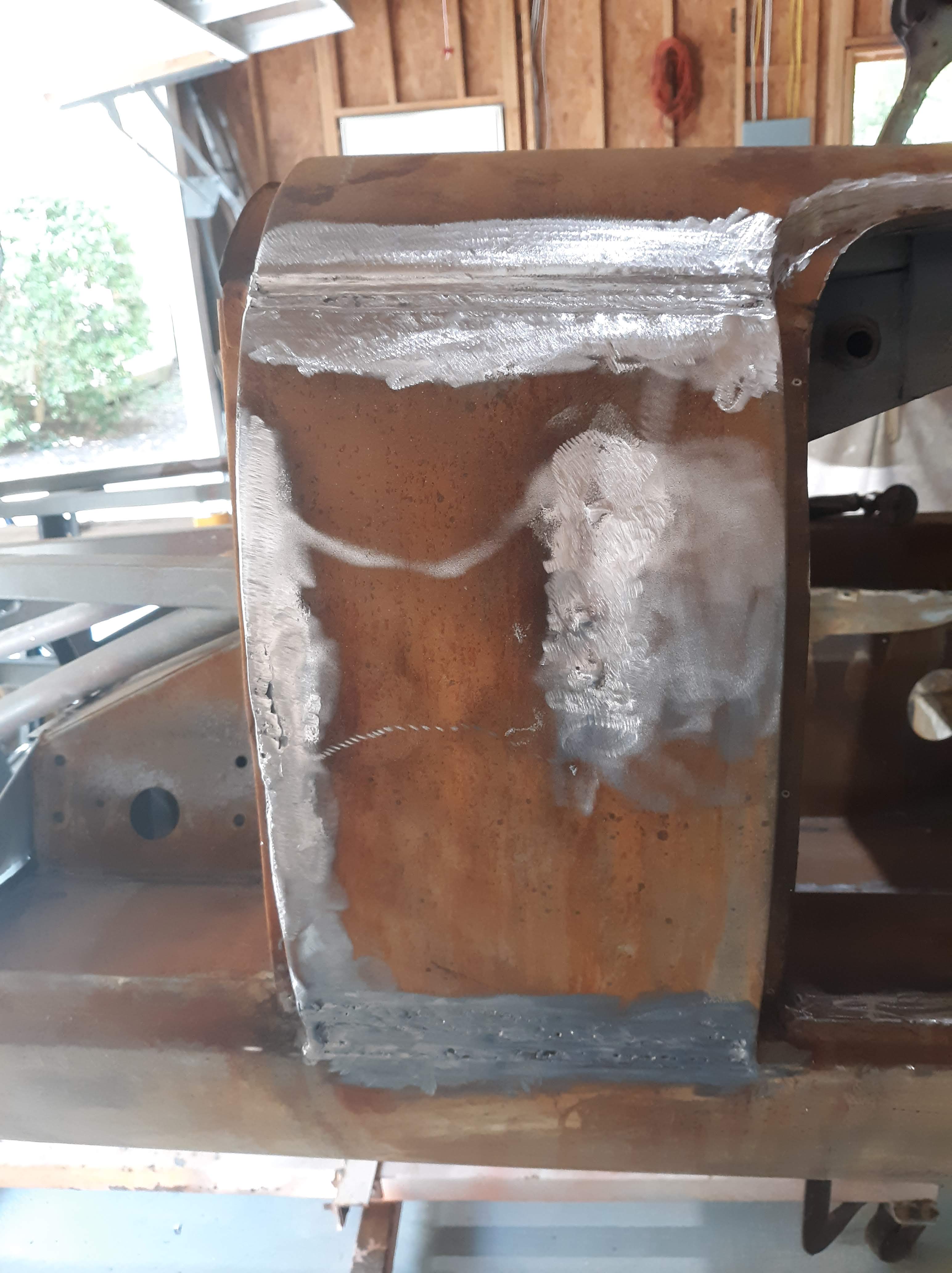 I didn’t get a picture but I spent the better part of the day lining up the holes for the bracket that supports the air cleaner. It sounds pretty straightforward. It wasn’t. The bracket I got was about an 1/8″ too long. Doesn’t sound like much but it would have forced the forward sill plate out of position. I cut out a section and welded it back to make it shorter but maintain the configuration of the ends. The sill closure plate did not come drilled with a hole. I found out at some point that there is a captive nut on the inside. I had to match drill for it. And get everything lined up vertically. And on and on.