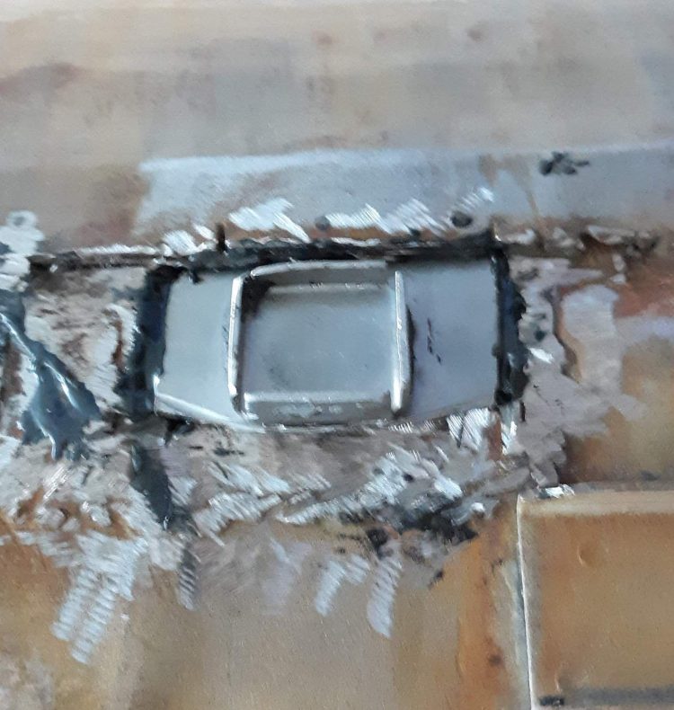 Another item was to weld up a plate at the hole for the radio aeriel. Esthetically, I’m not a big fan of attachments to the car that interupt the classic lines of the Malcom Sayer designed body. Aeriels are mainly for AM radio reception. Not a priority in my life.