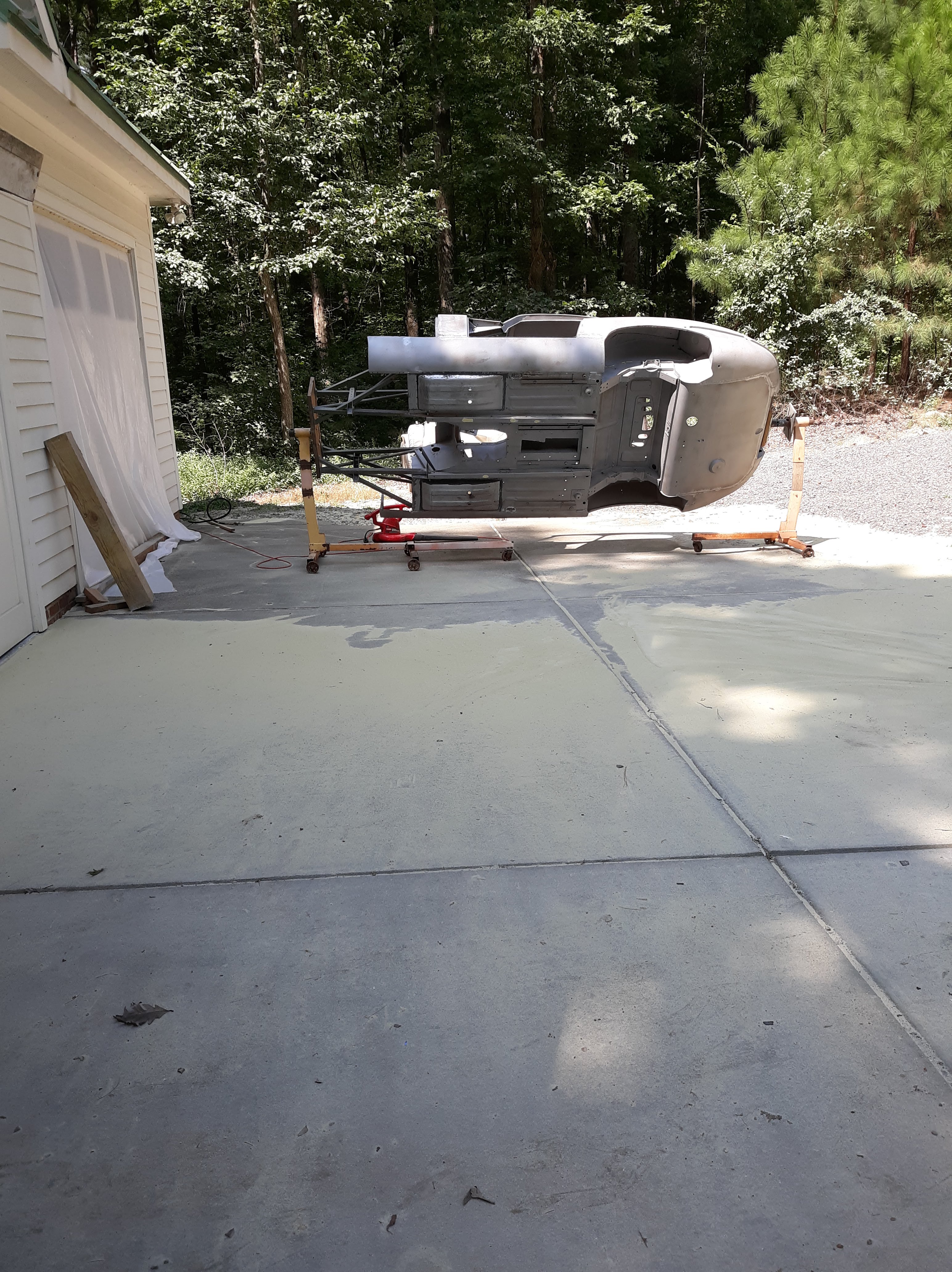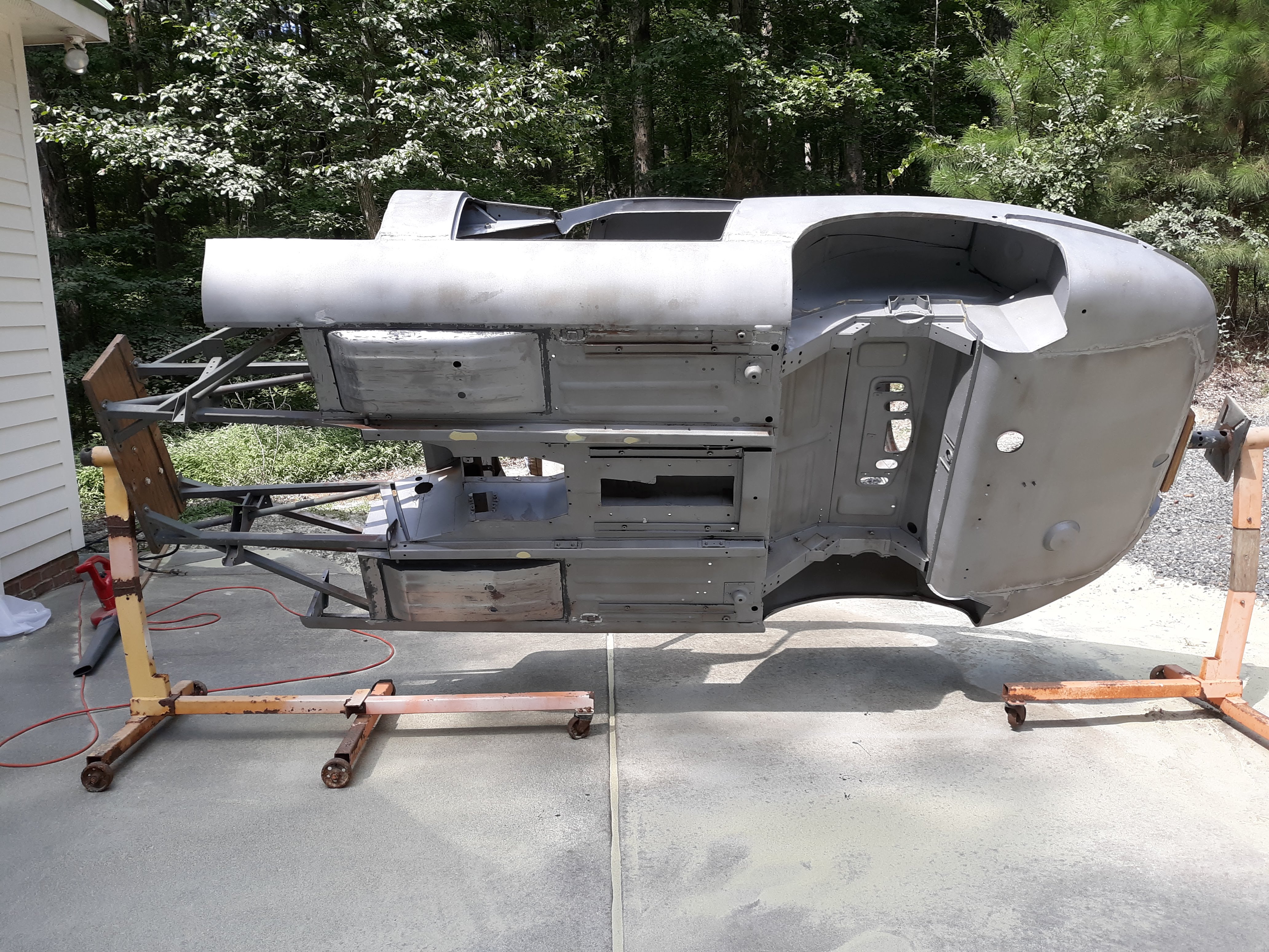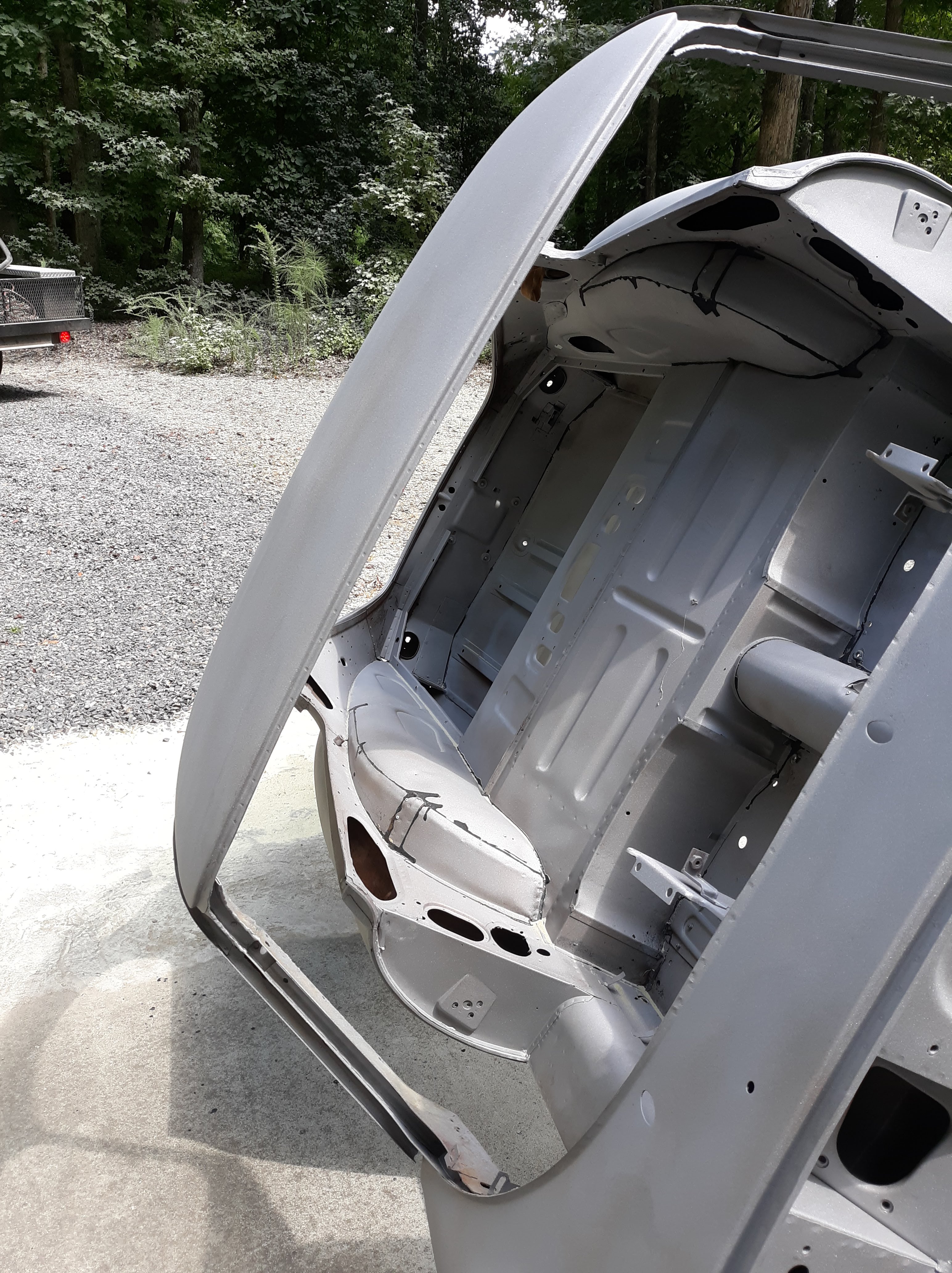 Here are 2 videos of the body shell immediately after the 2nd media blast. If you look closely you can see where I removed the lead loading at the various body seems. These videos and pictures shall serve as my final proof that the car is rust free!