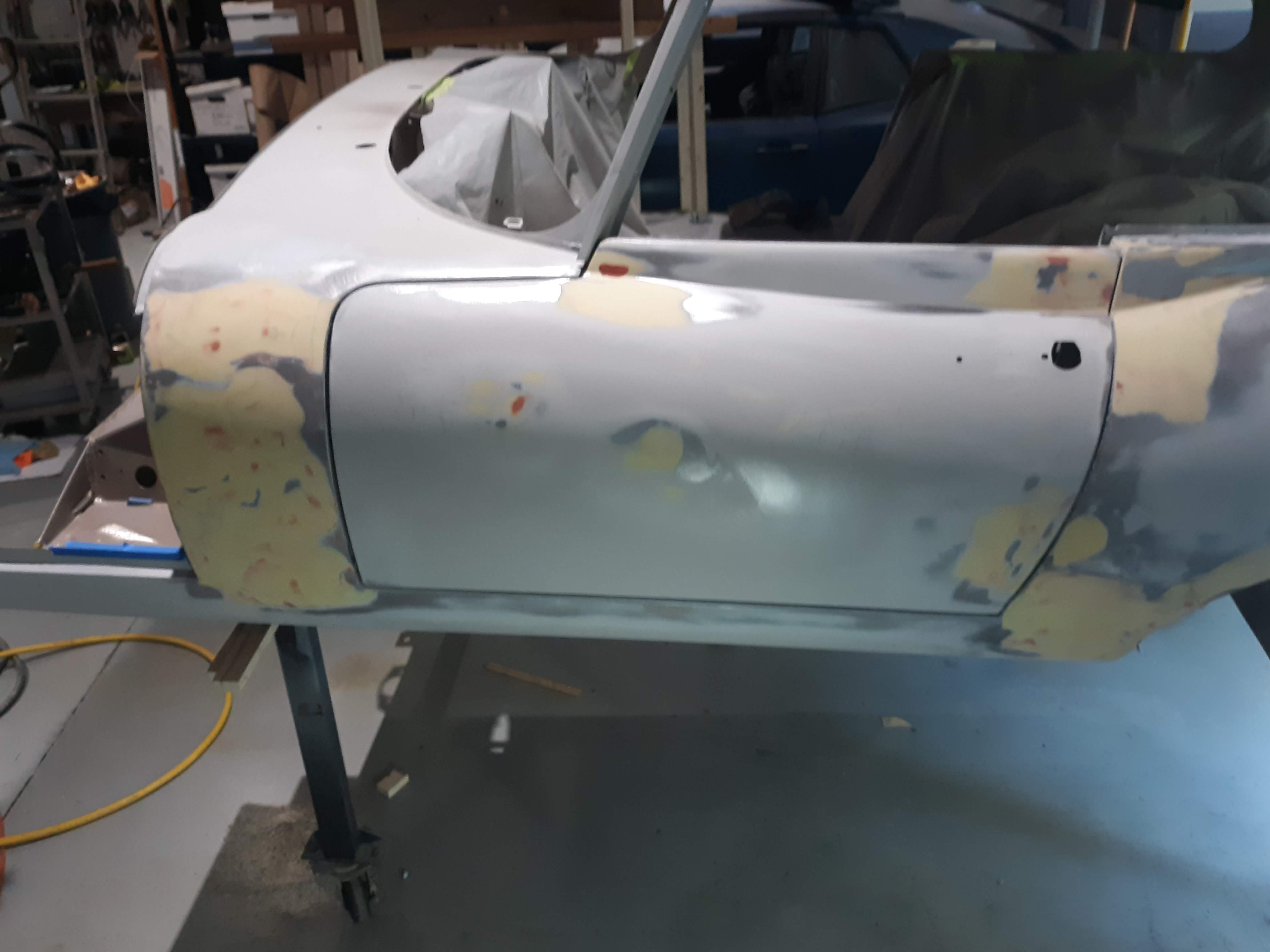 The doors and hatch present their own set of problems. I spent many hours on them. In general, the doors can be adjusted in the opening using the hinges but at some point you have to come up with the best compromise position and then use judicious applications of filler to make the door fitment perfect. Chuck Hadley at Monocouque Metalworks has a video on his Facebook page where he discusses this in detail. The factory used lead to help make the doors fit better cosmetically. Indeed, some of the lead I removed was around the door openings. I was reasonably happy with my results.