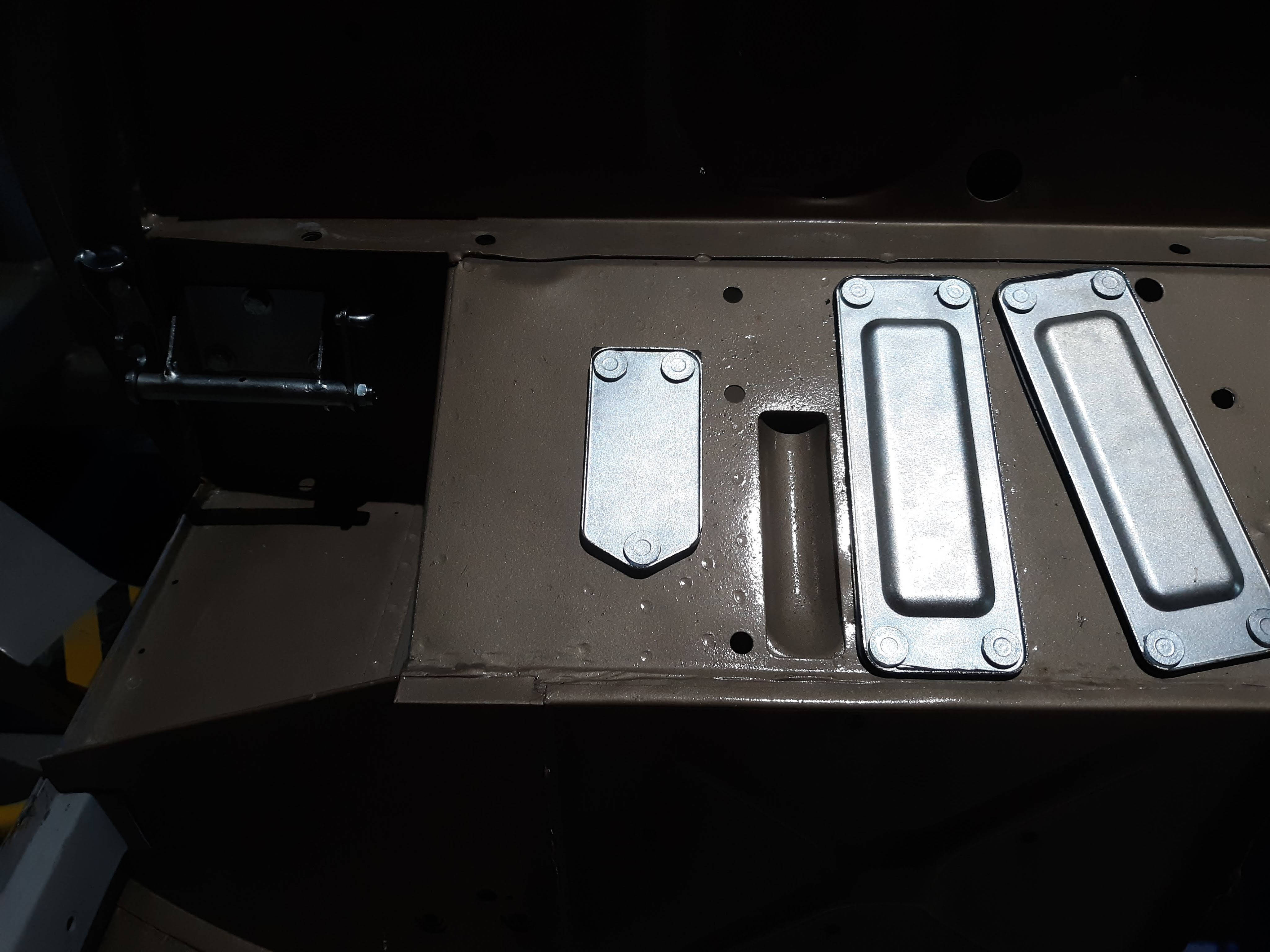 There are other items to be installed that were recently received from the zinc platers, as discussed here. The cover plates for the throttle/brake/clutch housings on a RHD car were an easy installation. It has been reported that these may have been body color for “paint to sample” cars but generally they are silver cad. Don’t forget the rubber gaskets.