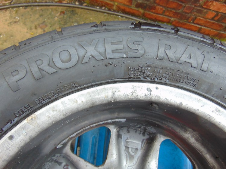 - Fuchs wheels with Toyo Proxes RA1 tires and a set of “Phone Dial” wheels with Kumho Ecsta tires.
