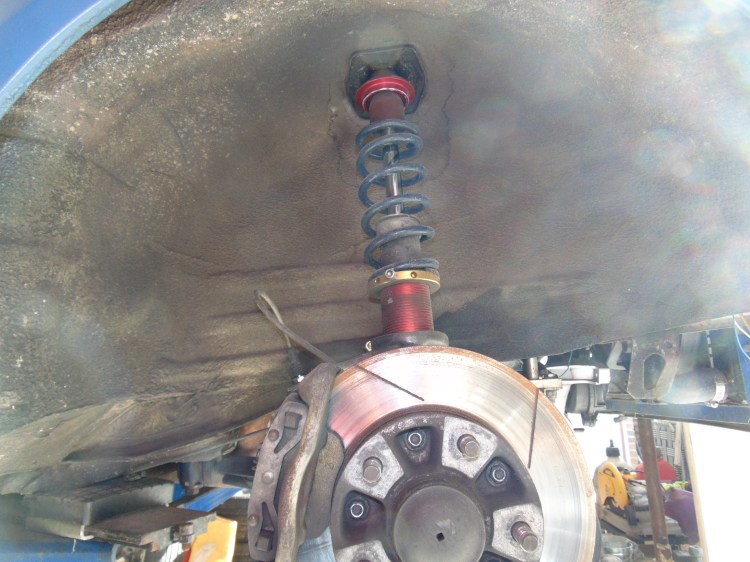 There is a complete discussion of this cars suspension in my build blog. The simple way to understand the suspension is go to the Paragon-Products.com website and review the description for the 944Spec1-Koni suspension package. I went with 350# front springs and a 30 mm rear torsion bar.