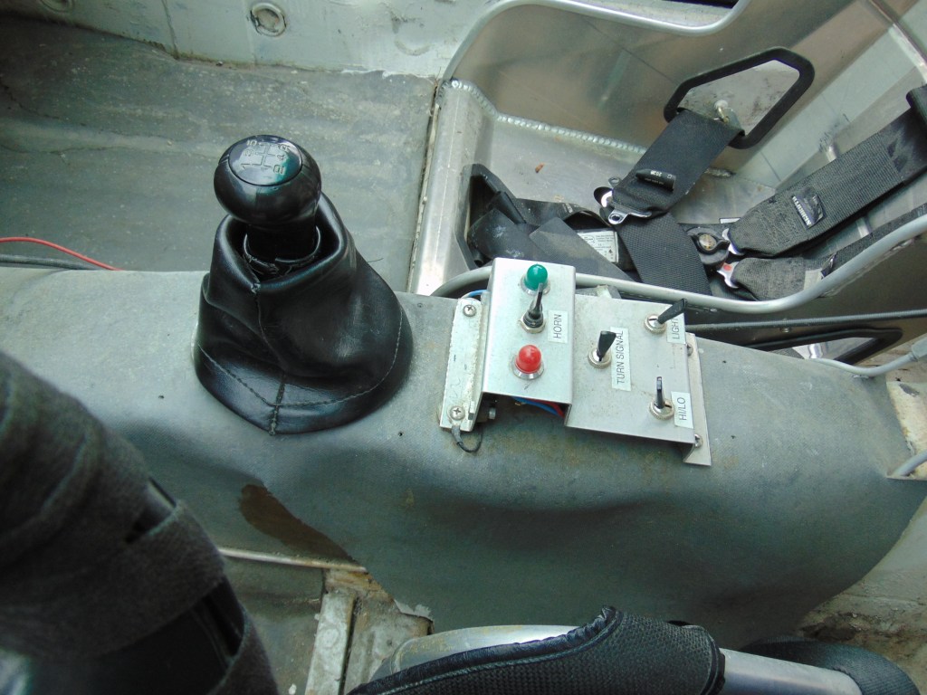 After some years of running with a non-street legal car, I realized that showing up at the track only to discover some mechanical problem was not a good strategy. As a consequence, a few years ago, I made the car street legal in accordance with North Carolina rules. As you will see in the pictures, there is a console in the middle of the car that has toggle switches for the horn, turn signals, and lights. The pop up headlights must be manually opened, as I do not plan to run at night but if you were going to run in an Enduro after dark, it is a simple matter to pop open the headlights, which are fully functional. The car does have a catalytic converter. In addition to allowing “test and tune” to be done between events, it is a hoot just to drive it around nearby back roads. Just don’t plan on taking your wife to dinner in it!