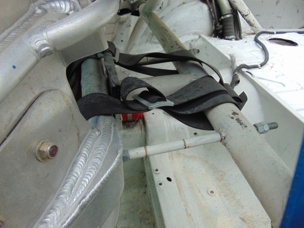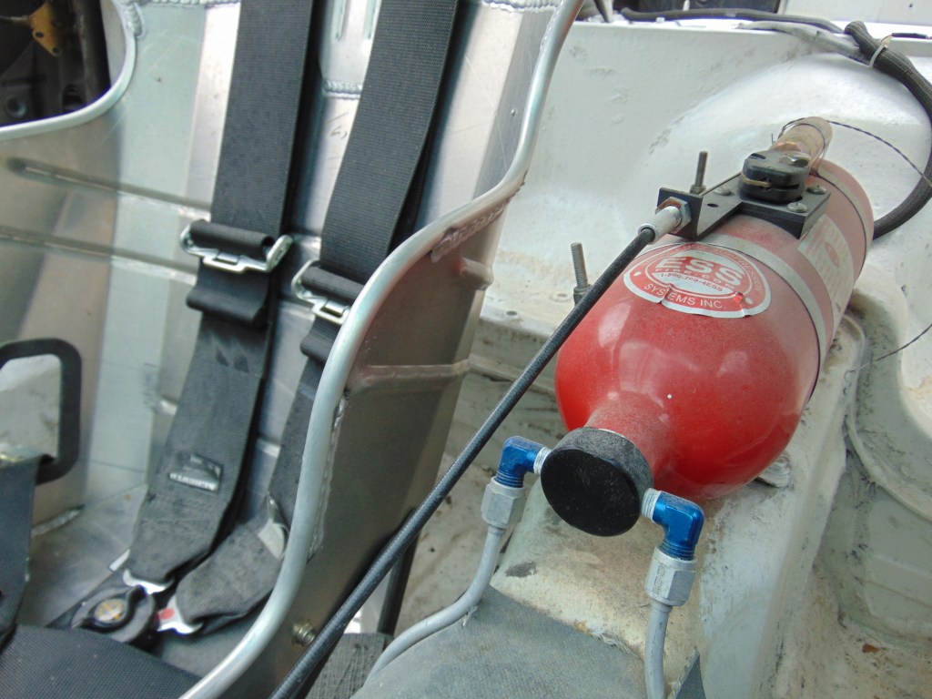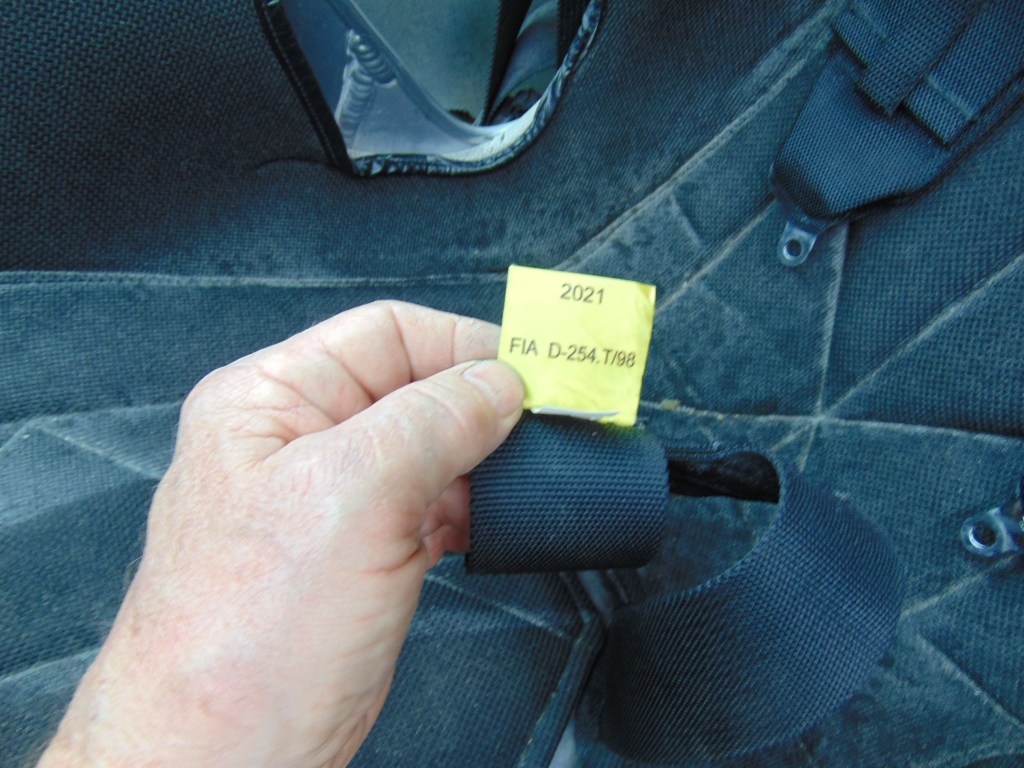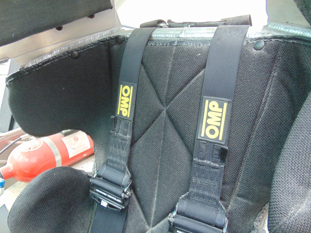 The car has a very robust drivers seat, as manufactured by TheJoieofSeating.com. I am 5’-7” and weigh 180 pounds. The seat was custom fit for my body. It is approximately 15″ wide at the hips. Sorry, either it will fit you or it won’t! The seat is fixed to the floor. There are pedal extensions on the 3 pedals. These stick out almost 4” and can be adjusted in 1″ increments, so if your legs are longer than mine (30” inseam) you could adjust them back quite a bit. Probably the most important thing for a track car is getting the seating and pedals in a good position. This can never be a one size fits all situation so be prepared to deal with this if you purchase the car. The steering wheel is removable. The passenger seat is sized for a “robust” individual. Both seats have 6 point harnesses. The FIA certification on both belts expires at the end of this year. The drivers harness is an OMP with the narrow straps required to use a Hans device. Which I absolutely recommend!