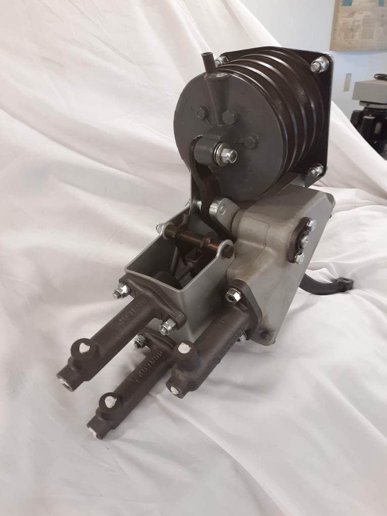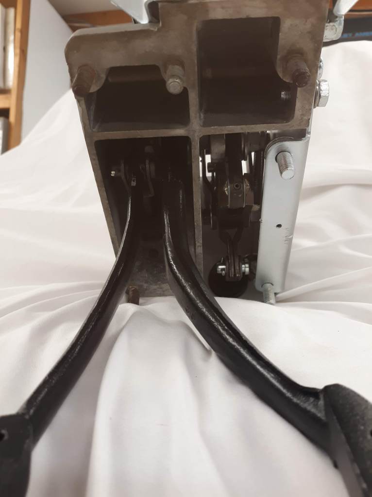 As a result, there was little progress on the 63 FHC. One thing that did happen in July is that I received a backordered clutch pedal return spring from SNG, which allowed me to complete the brake and clutch assembly on the firewall. That thing has a million pieces or so it seems. I was able to follow the exploded diagram in the Spare Parts Catalogue, with some input from pictures on-line and advice from my friend John Carey. It is done now and up “on the shelf” ready to install on the firewall after I get painting done. Here are some pictures.