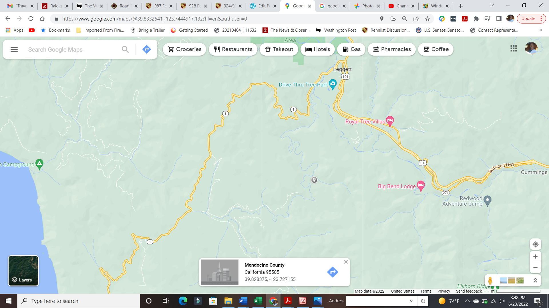Once you get onto CA Rt 1 along the northern coast, you start to see a trend. Long fairly straight stretches across the headlands, separated by twisty dives into the rivers and creeks that drain the watershed along the coastal mountain range. I met a lot of motorhomes and towed travel trailers. I am very glad I was driving my Porsche. When you are driving and/or towing a rig that is sized to be just slightly narrower than the legal limit (8 ft. in most places) you have to spend a lot of time making sure you stay in your lane and don’t drop a wheel off the side of the road. I have done it and it is very nerve wracking. Not conducive to relaxing Road Tripping!