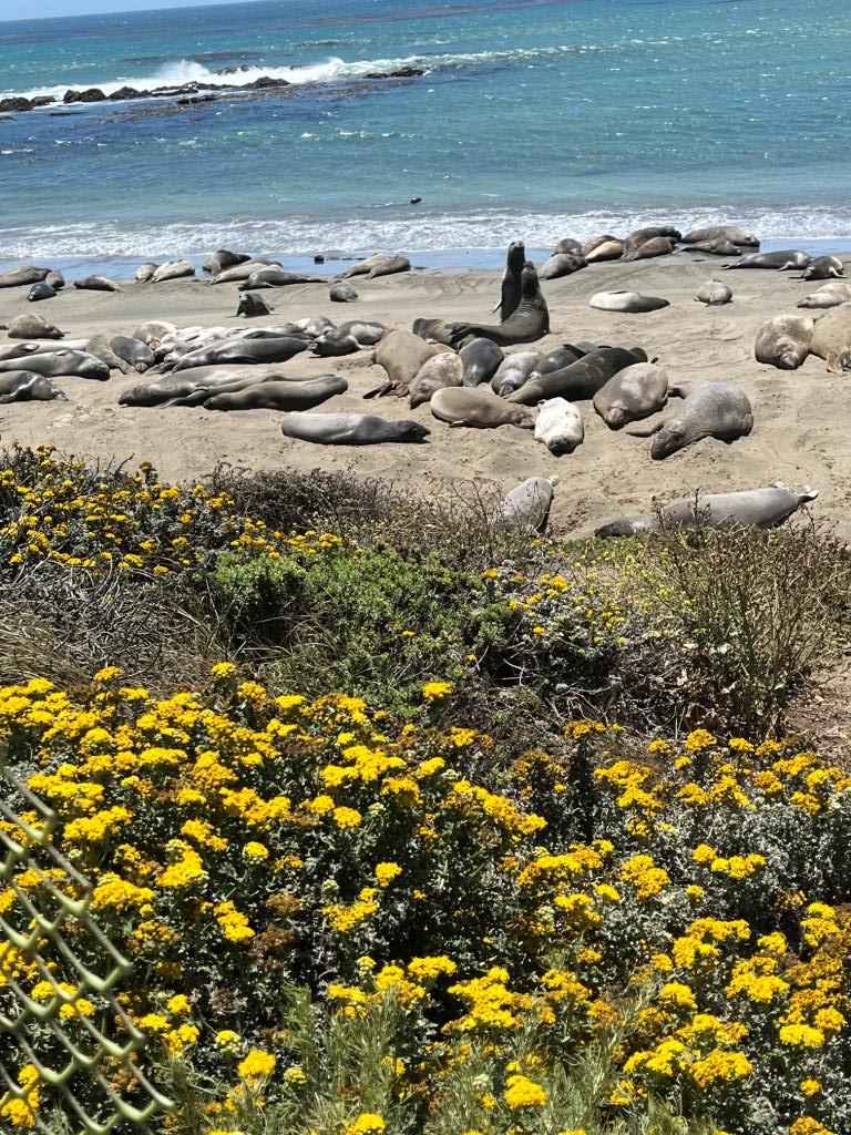 Another favorite stopping off point for me is the beach where a large number of elephant seals congregate, near San Simeon. Quite the sight!